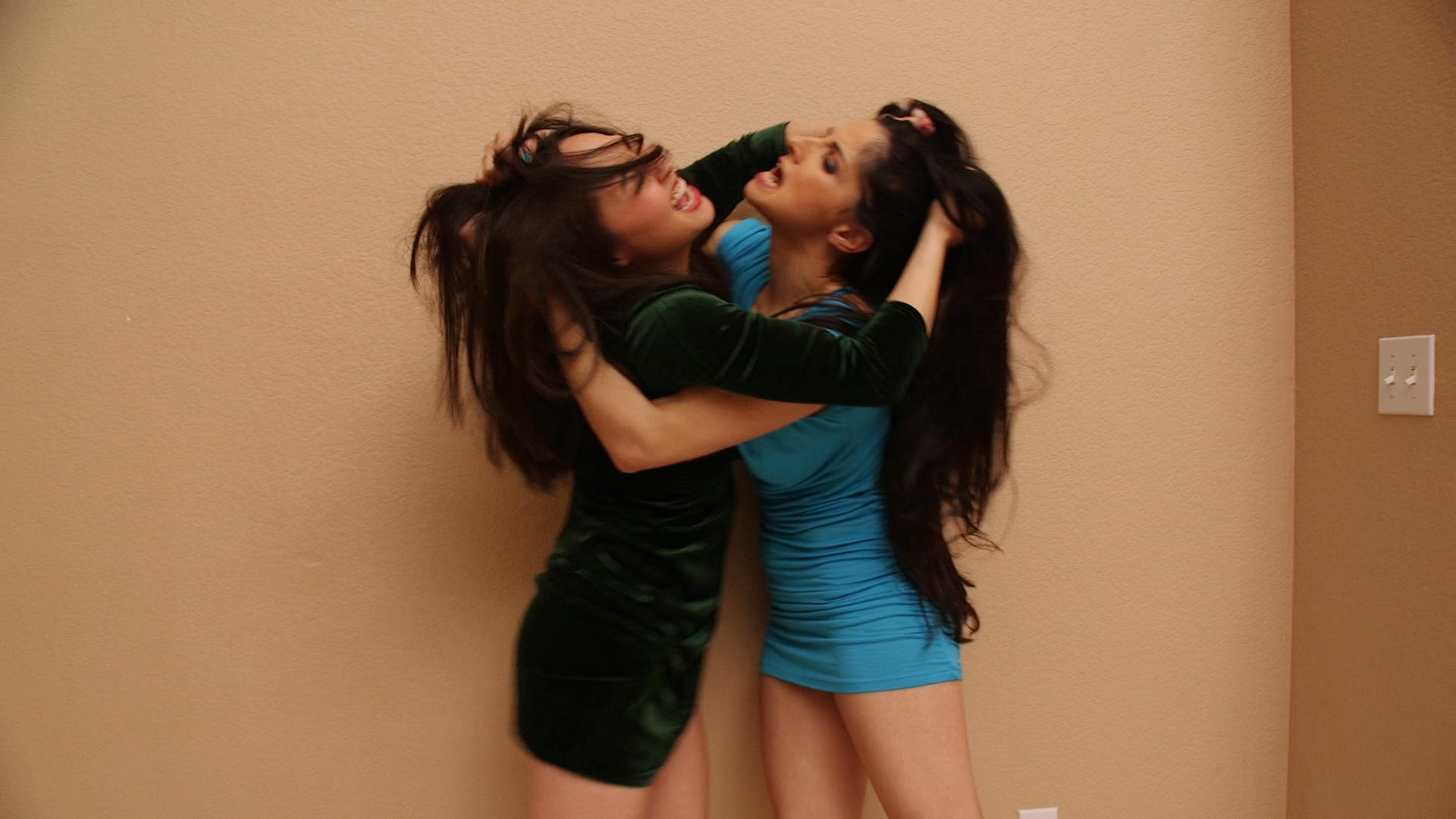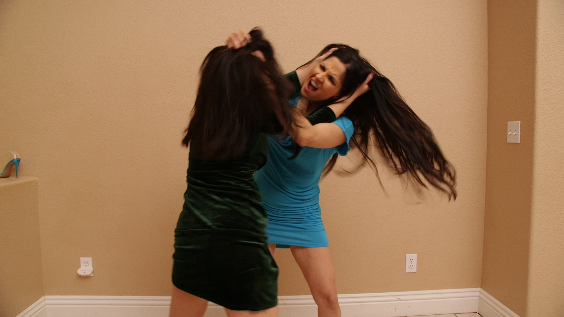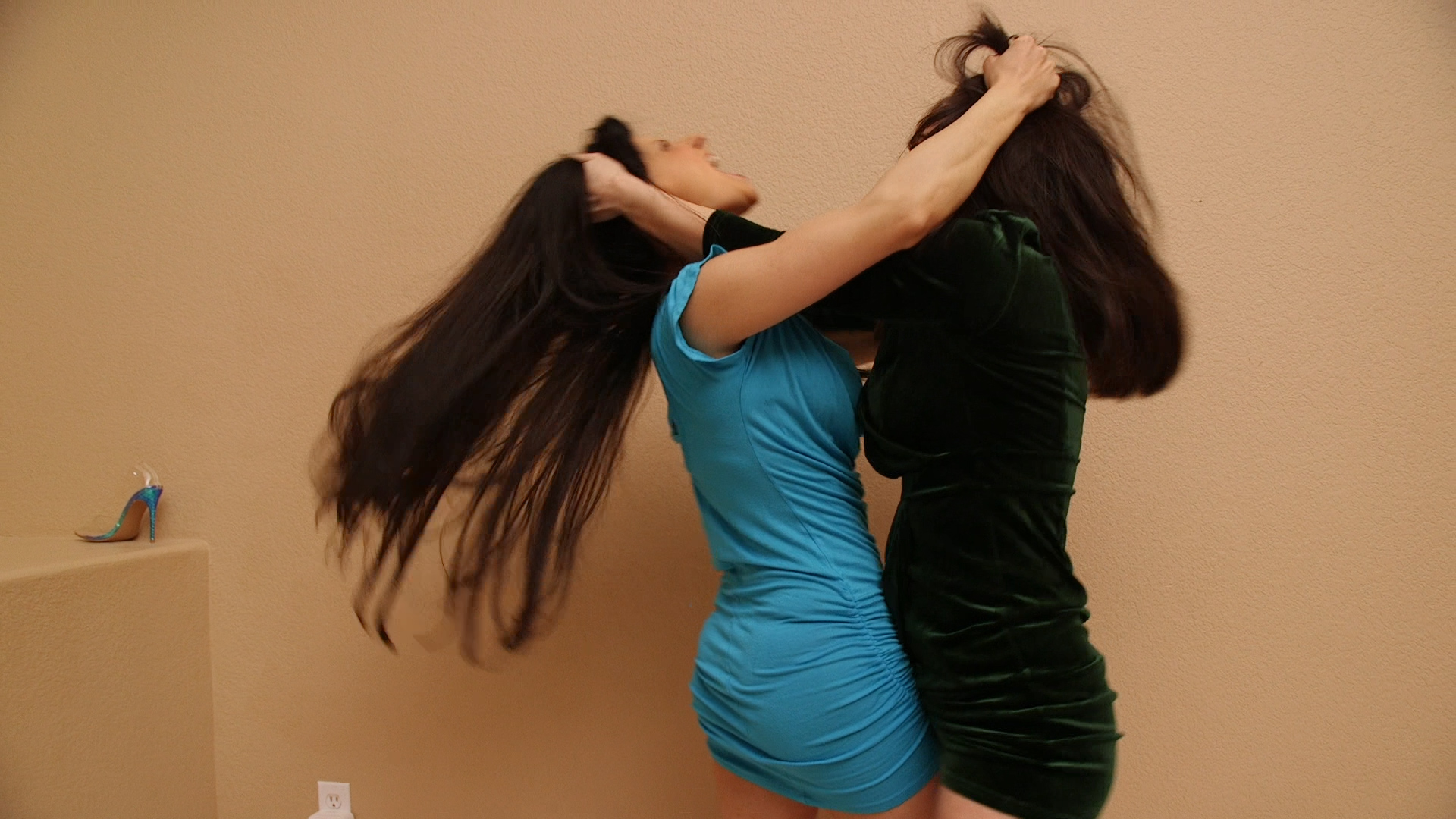 At a gala event, Hannah Perez and Sumiko Dreams agree to meet up for round two. They walk out and mediately circle each other, until they meet up nose to nose, while talking shit. Sumiko mocks Hannah, so Hannah headbutts and shoves her. They finger lock up, going back and forth with a test of strength. They bear hug, then stop. They both take off their shoes, and Hannah charges using one shoe as a sharp weapon. They ram into the wall, with Hannah trying to push the heel into Sumiko’s face and eye, who fights back. They roll on the wall, until Sumiko pushes Hannah off. They get into a hair pulling fight, which escalates into a slapping match. They step back and size each other up. Sumiko rushes forward,