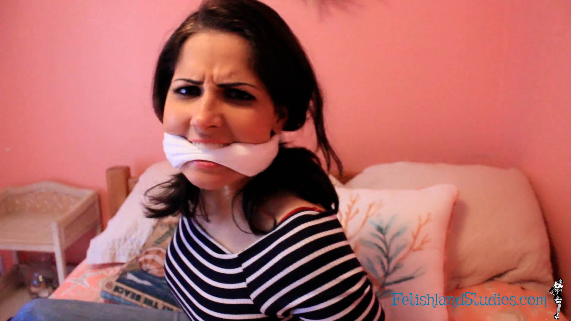 Hannah Perez had a warrant out for her arrest. The bounty hunter got to her and Hannah is really mad about being caught. She knows she has time thinking she can bribe her way out of going to jail for stealing. The bounty hunter wanted to think $500 to see if it was really worth letting her go. He places Hannah in a room handcuffed and she cant go anywhere. Hannah begins yelling and being obnoxious to get the bounty hunters attention. After a while he goes back in to talk to her and tells her that he needs time to think. He ends up putting a gag over Hannah’s mouth, but that doesn’t stop her from being loud. Hannah does numerous things that get her taped and gagged with duct tape. The bounty hunter is so tired of her that he agrees to the $500 and she is happy thinking she has made her escape with being annoying. Hannah got the money taken from her and she is going to go to jail.