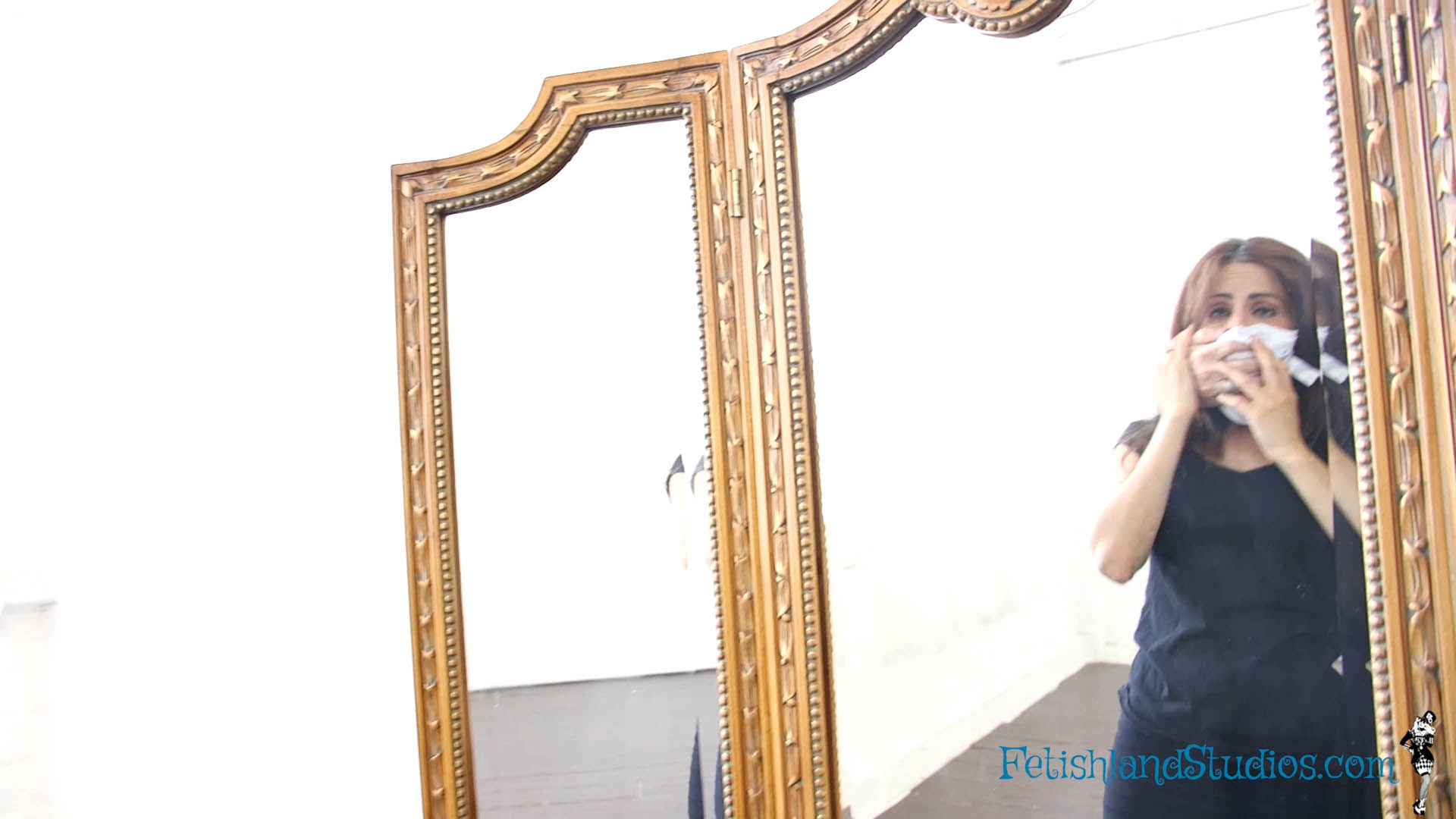 Hannah Perez, Skye Blue and Cali Logan have a job of breaking and entering into someones house. But, they weren’t prepared for him. He sees them in his house and he was about to call 911, he decided against it. Hannah goes off on her own to see what she can find and he knocks her out with a white rag. Skye is doing some searching of her own and He gets her with a white rag. Cali is moving around the corned into another room, and he sneaks up behind her and gets her with a white rag. He position the girls in a circle with there back together and has them bound and gagged. They are all trying to move, but they are not going anywhere. He comes to them and knocks them out again with the white rag. When the girls come to, they have been stripped down to their bra and panties and they have their socks on. They are tied and bound to separate chairs and gagged. Cali, Hannah and Skye are all trying to talk through their gags but its not working and they cant communicate. They all just know that they want to get out of the situation. He enters the room and he removes their gags. They are all begging and pleading for him to let them go. Instead he forces Hannah and Cali to kiss. Skye is to the side of them just wanting out. He then knocks Cali out with the white rag and then Hannah. Then he knocks Skye out last. Skye begged him not to. When they come to they are all on their bellys hogtied and gagged with tape over their mouths. Cali, Hannah and Skye are all moving side to side and wiggling. There is no hope for them. He comes in and calls the cops and reports a break in. The girls arent getting away with it.