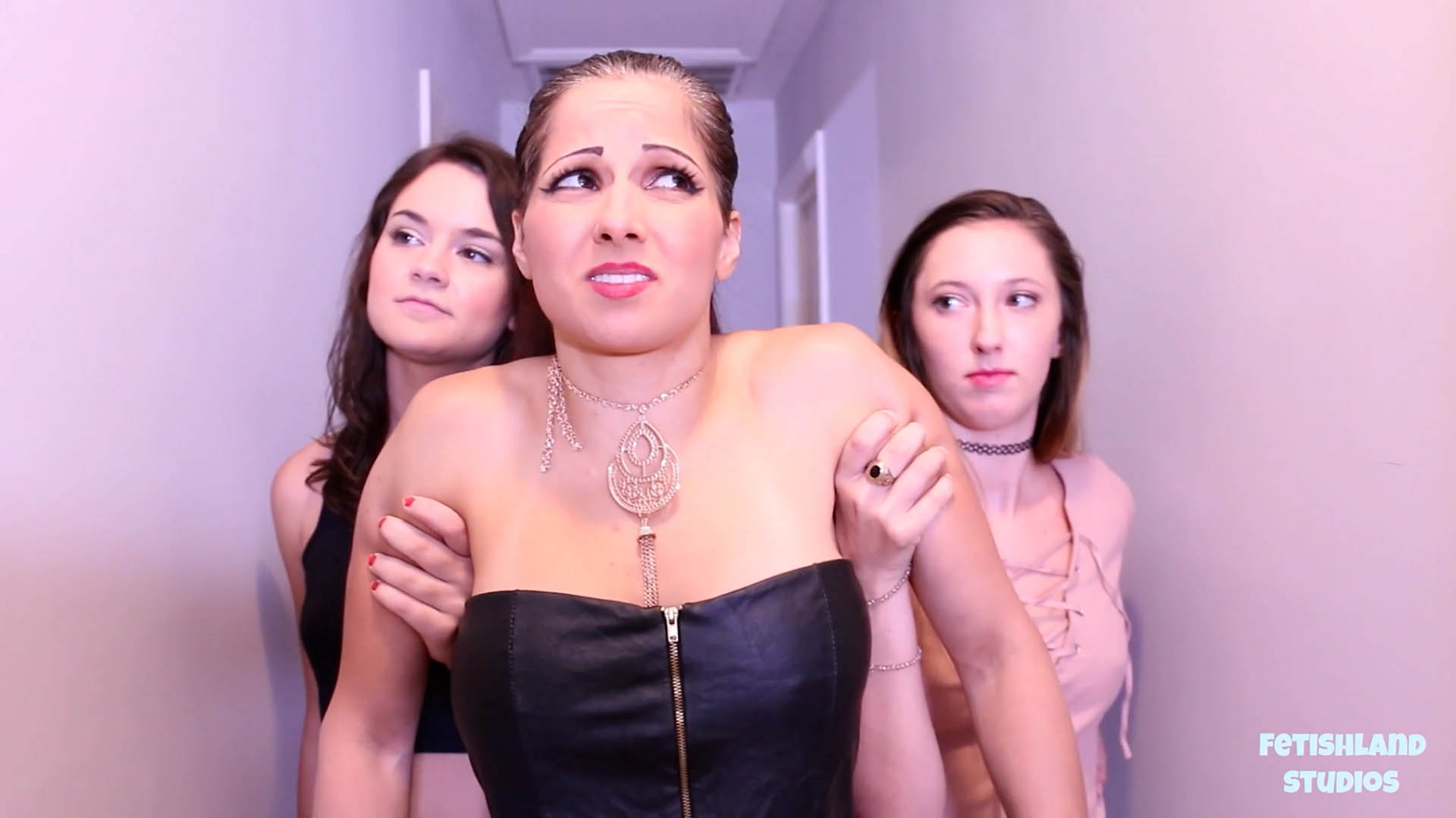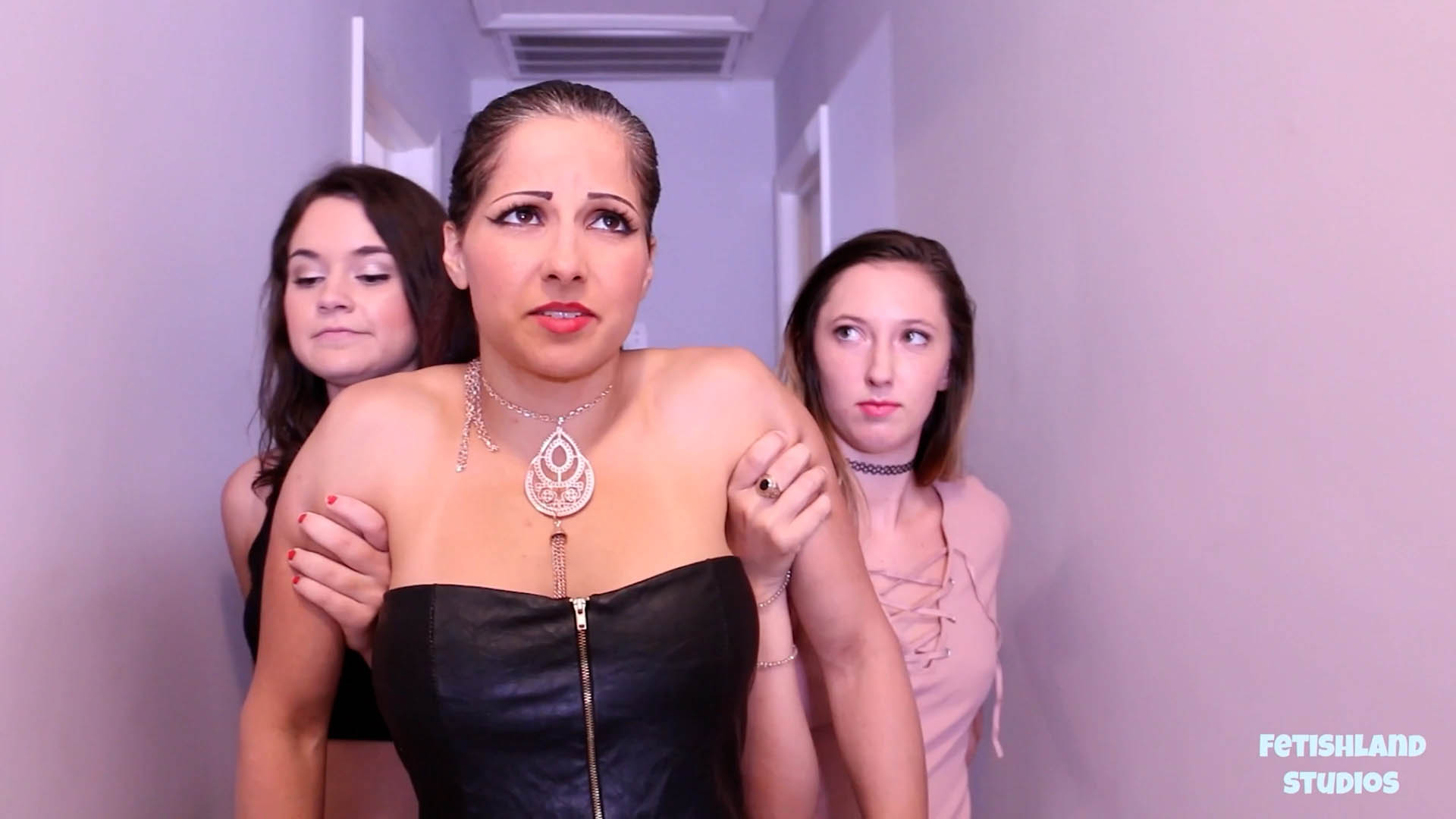 Hannah Perez has skipped out on bail and is squatting in a local residence. Her bounty hunters (Laney and Aria) are after her and have finally tracked her location. They gain access to the place, corner her, and proceed to escort her out of the place. Only, she has ensured that they have no easy way out. The two women walk her around the house, gripping her by the arm on either side, until they discover a way to exit. Custom 2016