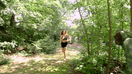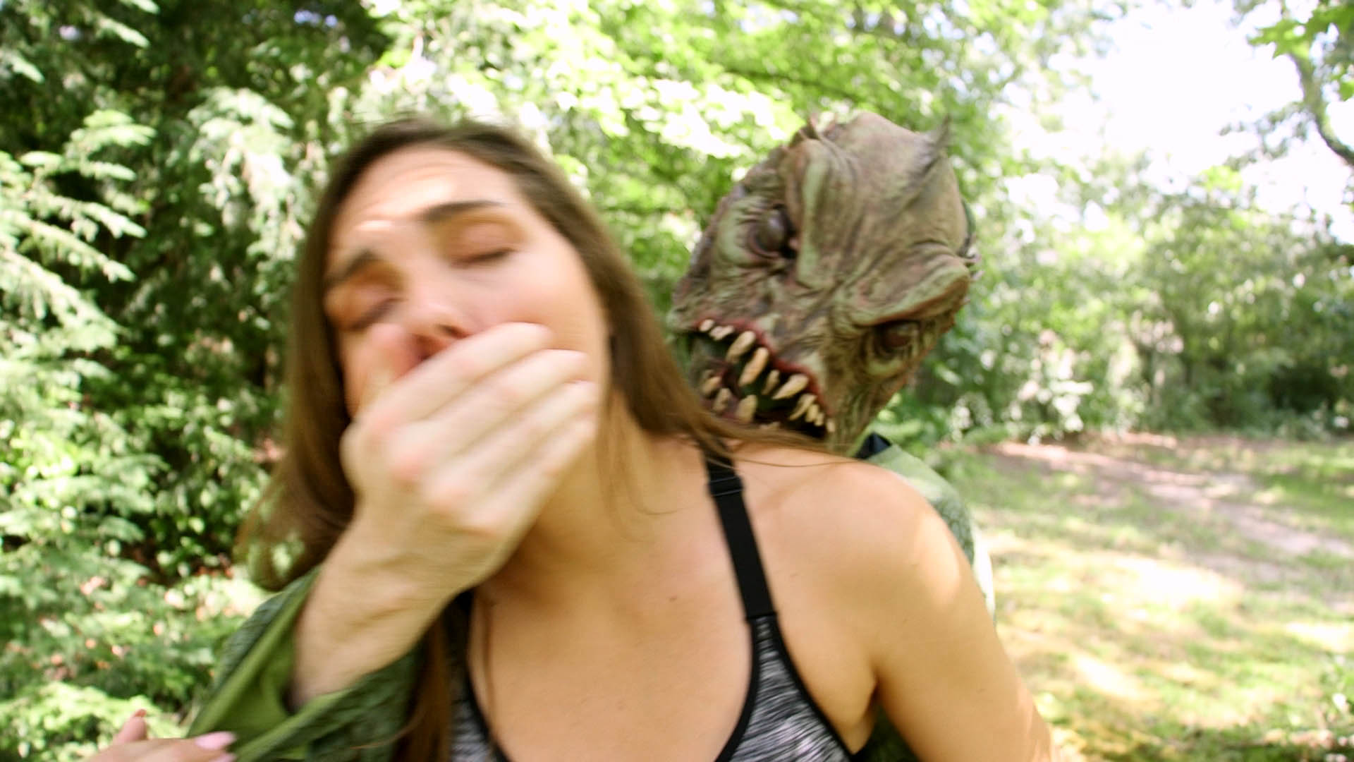 Sadie is taking a jog through the woods when she is stopped by some creature. Sadie startled, “isn’t it a little late for Halloween” well the monster told her that he needs to take her to his planet for breeding. He puts his hand over Sadie’s mouth and takes her further into the woods. Sadie begs for the monster not to take her as he gropes her breasts and puts her into a sleepy state. Sadie goes limp after struggling and pleading to be let go. The monster picks Sadie up and goes to carry her away when he hears a loud noise and quickly places her down and disappears.