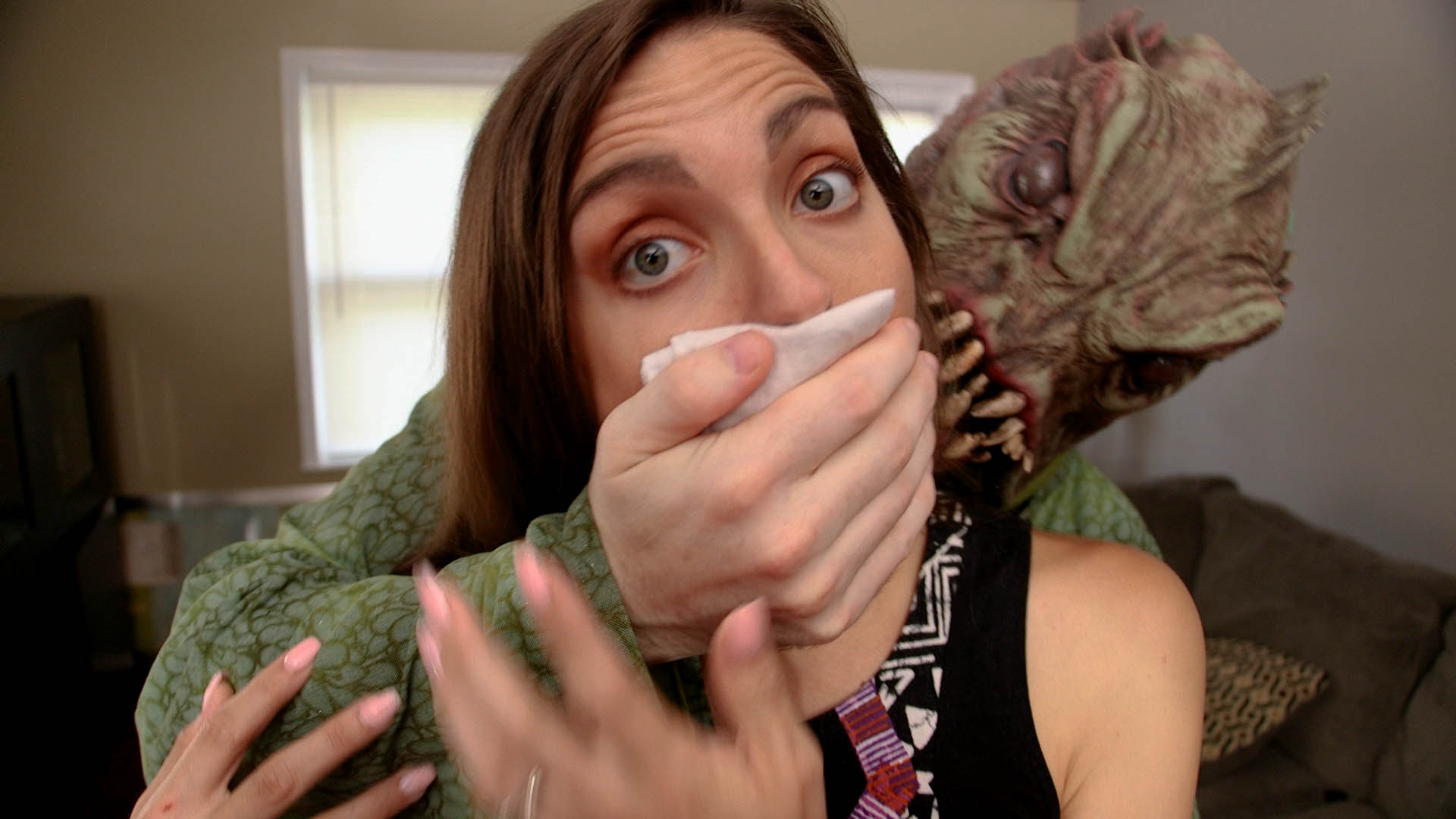 Sadie is on the phone saying how she is definitely freaked out. She feels like they are being targeted. Sadie plans on packing up and staying with her boyfriend for a while. She tries to think about anything else that she may need while she stands there. The monster has mad his entrance again and puts its hand over he mouth. Her breasts then become exposed and he gropes them while he tries to put her out. He tells her that they must be leaving and she needs to relax. With the white rag the monster can finally proceed with its intentions. Sadie tries to ask for the monster not to take her. But it seems to be no use to her. The monster is able to take her away this time.
