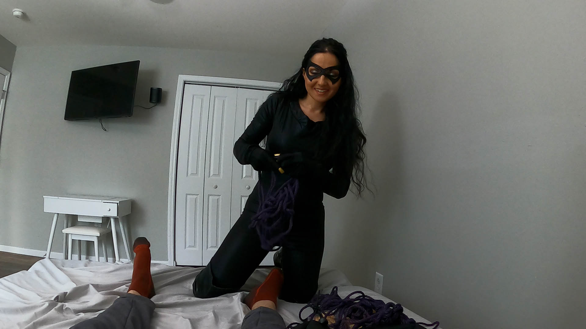 Hannah Perez ties you up and is ready to write a letter to your daddy. She likes you though so it might take her a while to write it up.
