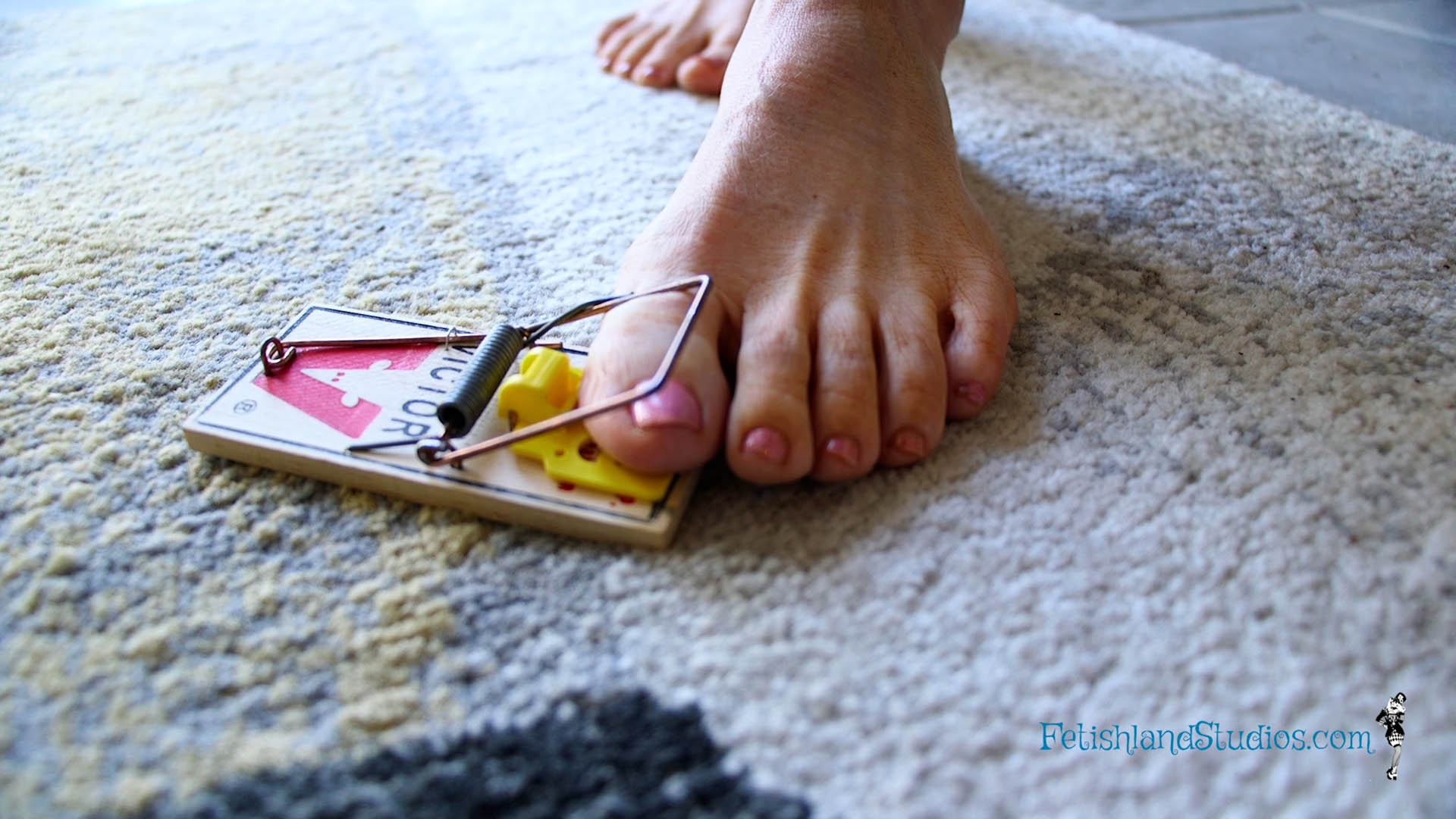 Ashley and Lora meet again, and tell what happened to them. They want to leave, but realize the floor is slimy and fall to ground, their asses landing on pins. Ashley also falls on the mousetrap. They remove pins from feet and butts, when a dawg appears and tastes them on their asses.