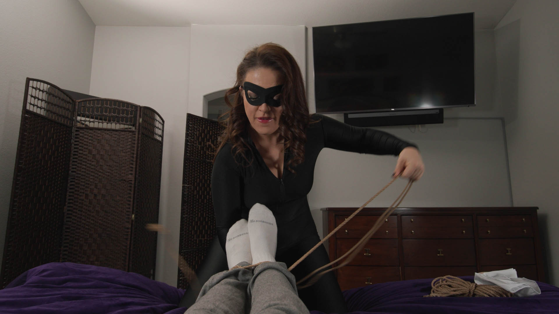 Carmen Valentina gagged the guy and robbed his place and plans to take him with her to make more money.
