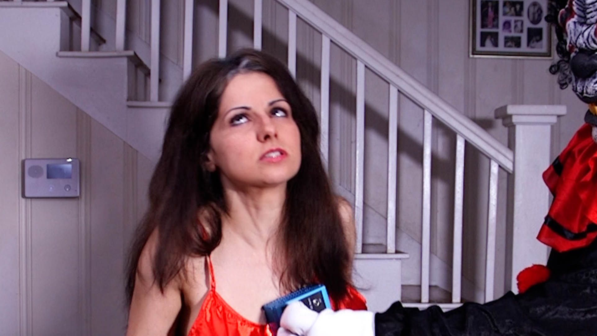 Hannah Perez is telling her boss that she is sorry and she knows how much it meant to him for to get things done right. He ignores her and begins poking at her breast then he brings out a big tazer and begins to shock her longer then necessary with it and knocks her . Then Boss begins to play with her chest again. Second scenario, the boss comes down the steps and circles Hannah as she tries to let him know that she can make things right. As the Boss is circling Hannah he flaps her chest, then he comes behind her and squeezes her head and she falls to the ground weakened. The Boss stomps on her and begins to play with her chest. Third scenario, the boss totally ignores Hannah not letting her say much then begins to have her in a chokehold and knocks her and exposes her chest and begins to play with her breast.