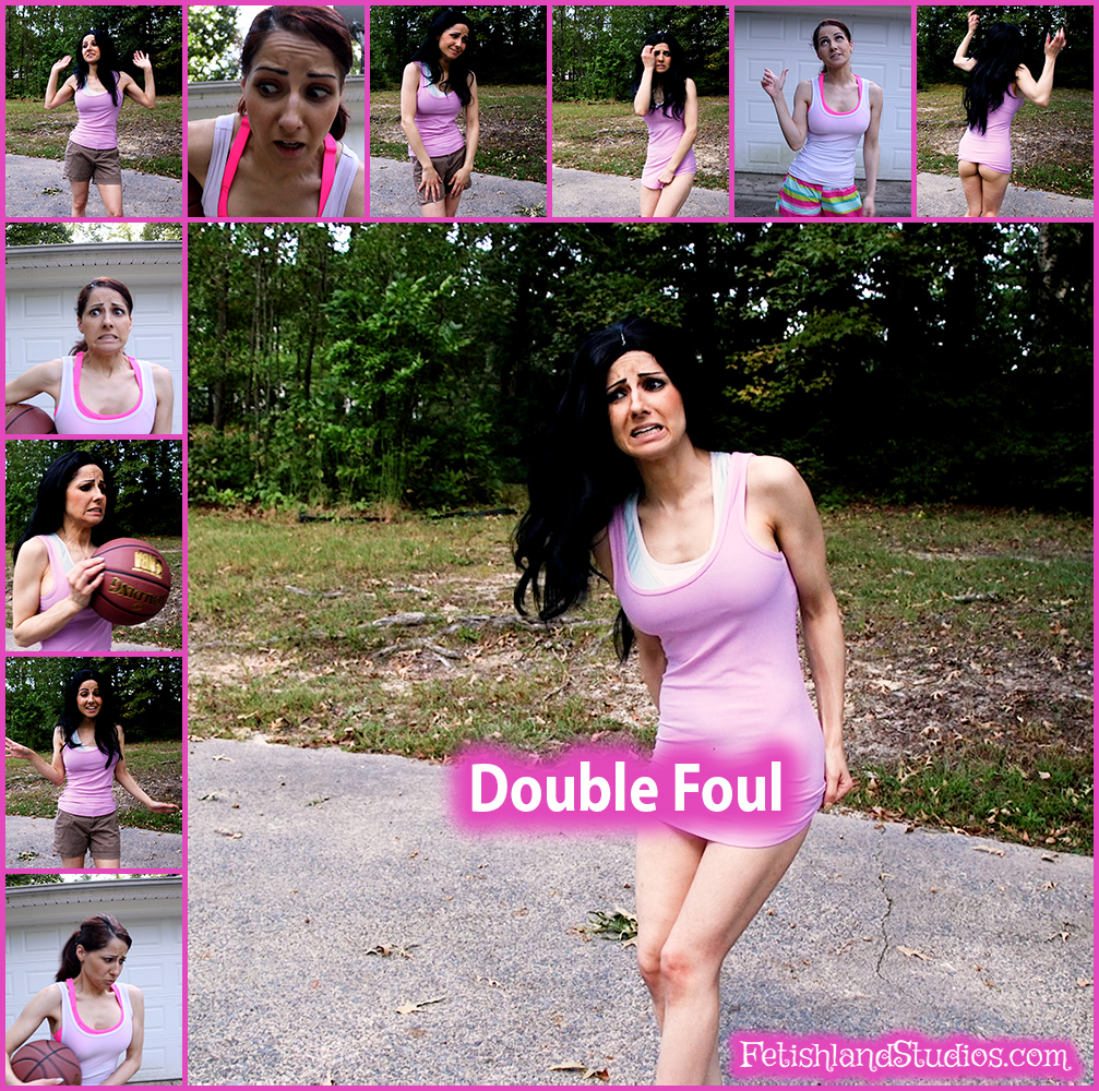 Hannah Perez is ready to play some basketball. She comes out dribbling then she is ready to shoot her shot until she sees her shoe untied. Hannah bends over and the least expected thing happens. Her pants rip, showing her playful cartoon panties. Hannah was so embarrassed and the girl she is about to play against begins making the time even more embarrassing. Nice panties Hannah. The other girl goes to pick up her ball and karma backfires. Her pants rip showing her fun ruffles. Now that she is completely embarrassed they have to begin the game with their asses hanging out. Hannah wants to slow down the other team she she find a fishing pole. She casts the line and gets the last bit of the other girls pants down. Showing her naked ass and she continues to try and cover up. But of course Hannah will experience the same thing. It’s only fair, but will they call this a double foul on the court or keep going?