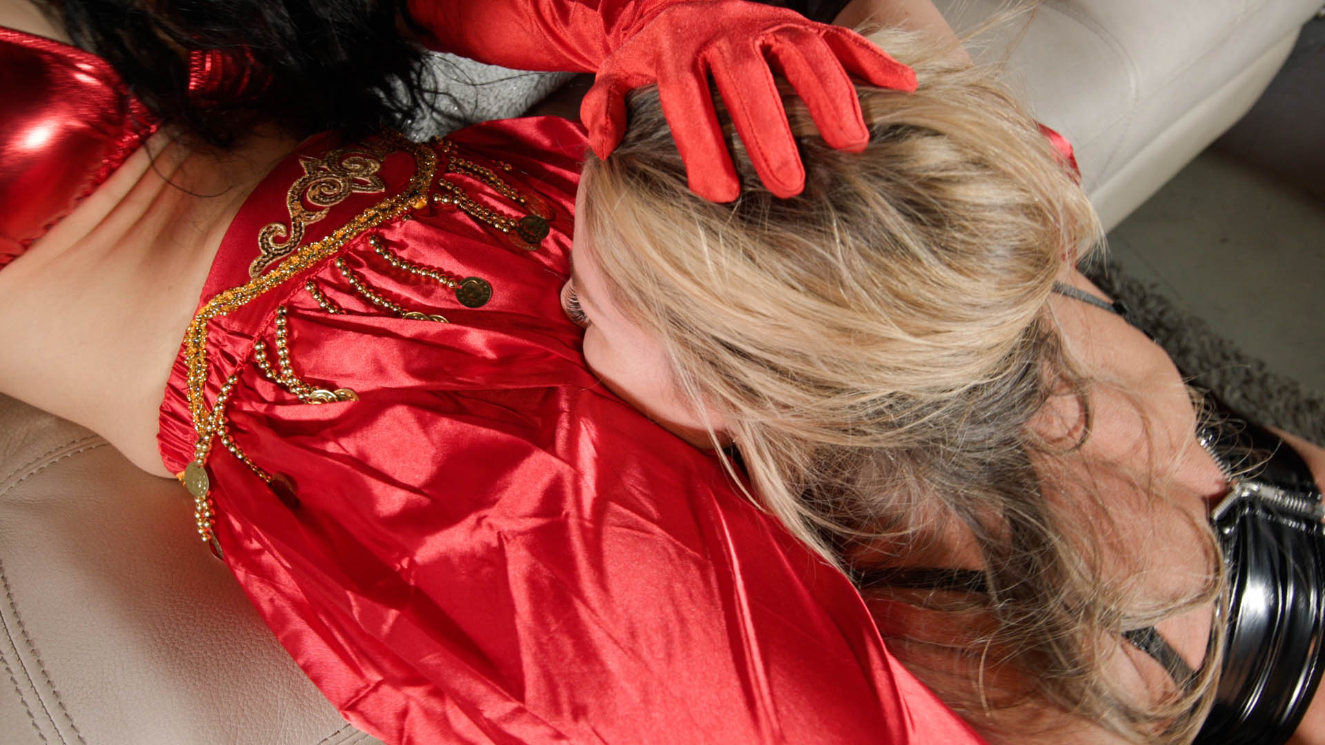 She rings Hannah’s apartment bell, and she opens the door. Hannah refuses to show Randy her phone, and she takes Randy down to the floor, face sitting on her. She then does reverse face-sitting, squeezing her as Randy struggles. Hannah becomes confident she has control, when suddenly Randy gets out and face sits her. She asks Hannah for her phone’s code, which she refuses to give, so she sits for a longer time. Hannah gives her the code, and Randy investigates the conversation with her husband. She takes Hannah in a killer position, until she stops moving. She takes off Hannah’s pants and pulls her into another room. Randy’s husband rings the doorbell and is surprised to see Randy open the door. She takes his face in her tights, making him forceless, and facesits and reverse facesits on him. She goes into the other room and changes into Hannah’s pants, then comes back to facesit and reverse facesit on her husband. She brutally squeezes his face until he stops moving. She grabs her pants and leaves.