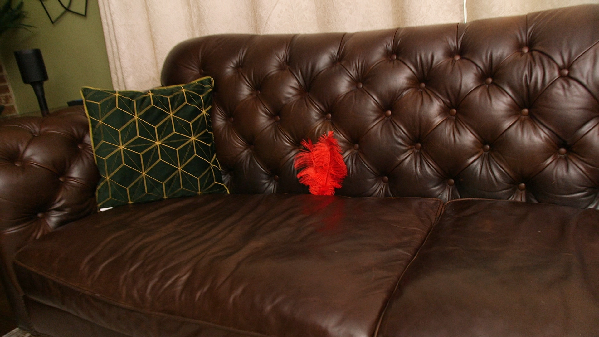 Blake enters her apartment and finds a feather- She has a deal with her landlord for free rent: whenever he leaves a feather on her apartment, she will let him tickle her feet. Blake wraps herself on a blanket, with her feet on pillows. The landlord (POV) arrives and examines her. He tickles her, worshipping her feet.