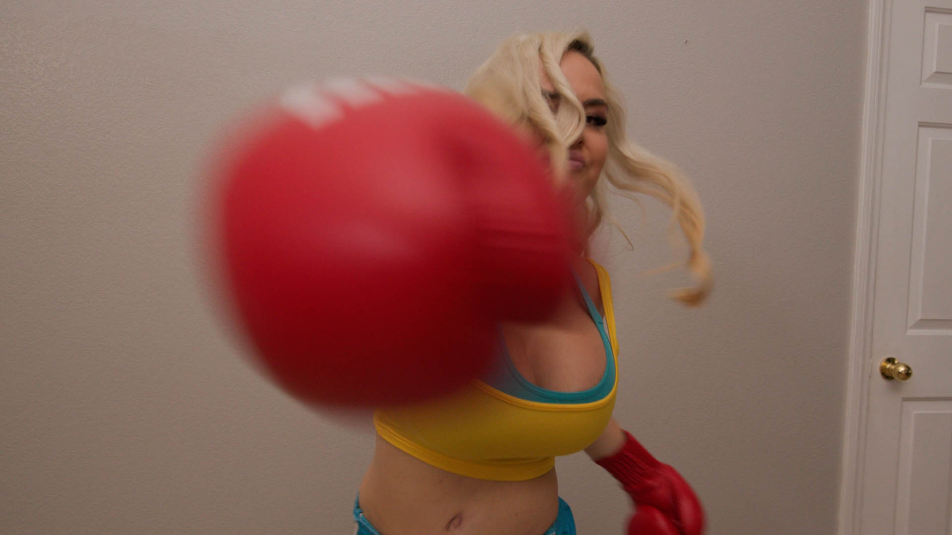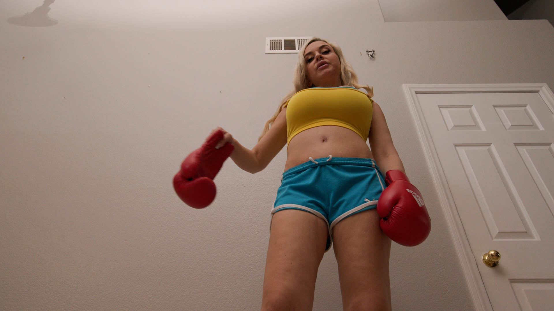 Bad Bella has had enough of your (POV) harassment of her at the gym, constantly bothering her with your thoughts of men being physically superior to women. This time Bad Bella tests your mettle and challenges you to a boxing match. Bad Bella kicks your ass severely, then gives you a humiliating lecture in front of the whole gym.