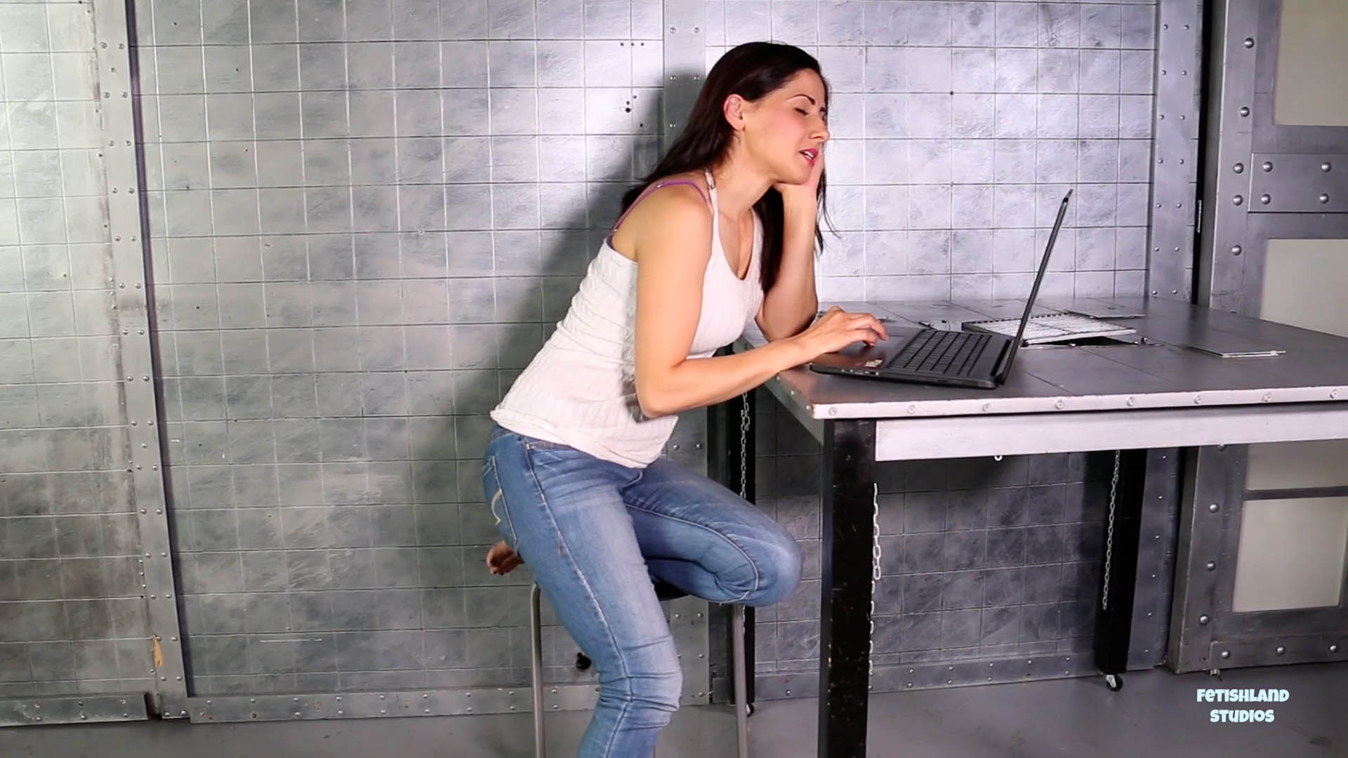 Hannah Perez is sitting at the table on her computer, casually browsing the web. She has to pee. It’s been building up for a while. But she’s very comfortable and doesn’t want to move. So she continues browsing the web. As time passes the desperation gets worse. She fidgets in her seat and mumbles to herself about how badly she has to go but also the fact that she doesn’t feel like getting up. Eventually though, it becomes too much. As she shifts around, she finds the perfect position and lets loose right in her pants. Her pee runs down like a full stream through the denim fabric and onto the floor. Hannah sighs in relief. She feels so much better. But she still very comfortable and decides not to move from her spot. At some point she stands up to inspect the damage. She turns around in a puddle of piss to show the wetness of her jeans. She sits back down and resumes her work on the computer, telling herself she will clean it up later. Custom 2017