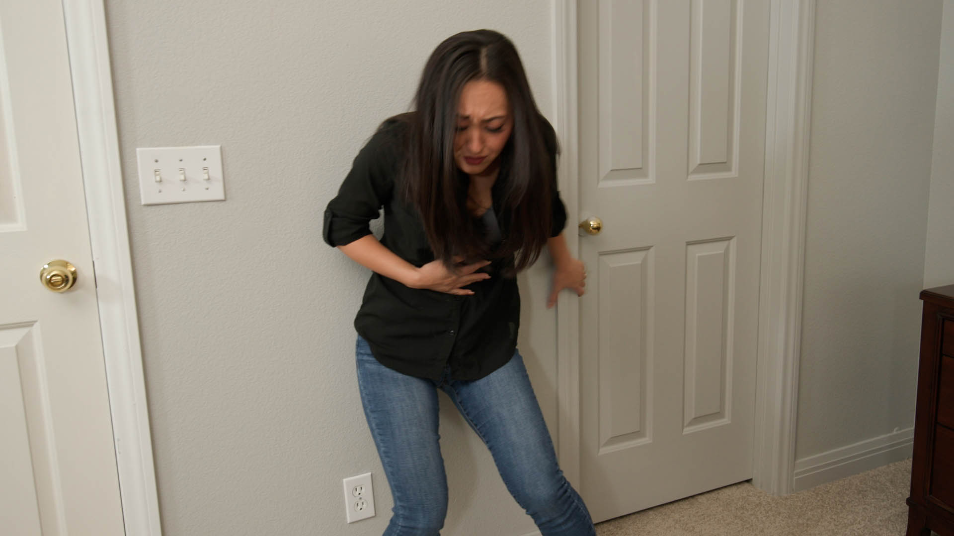 Sumiko Dreams is home from work. she’s attacked. Shirt removed. Abs punished. Kicks punches claws. Made a finger into the belly button. Sumiko tells what moves are being done. Left out cold breathing hard.