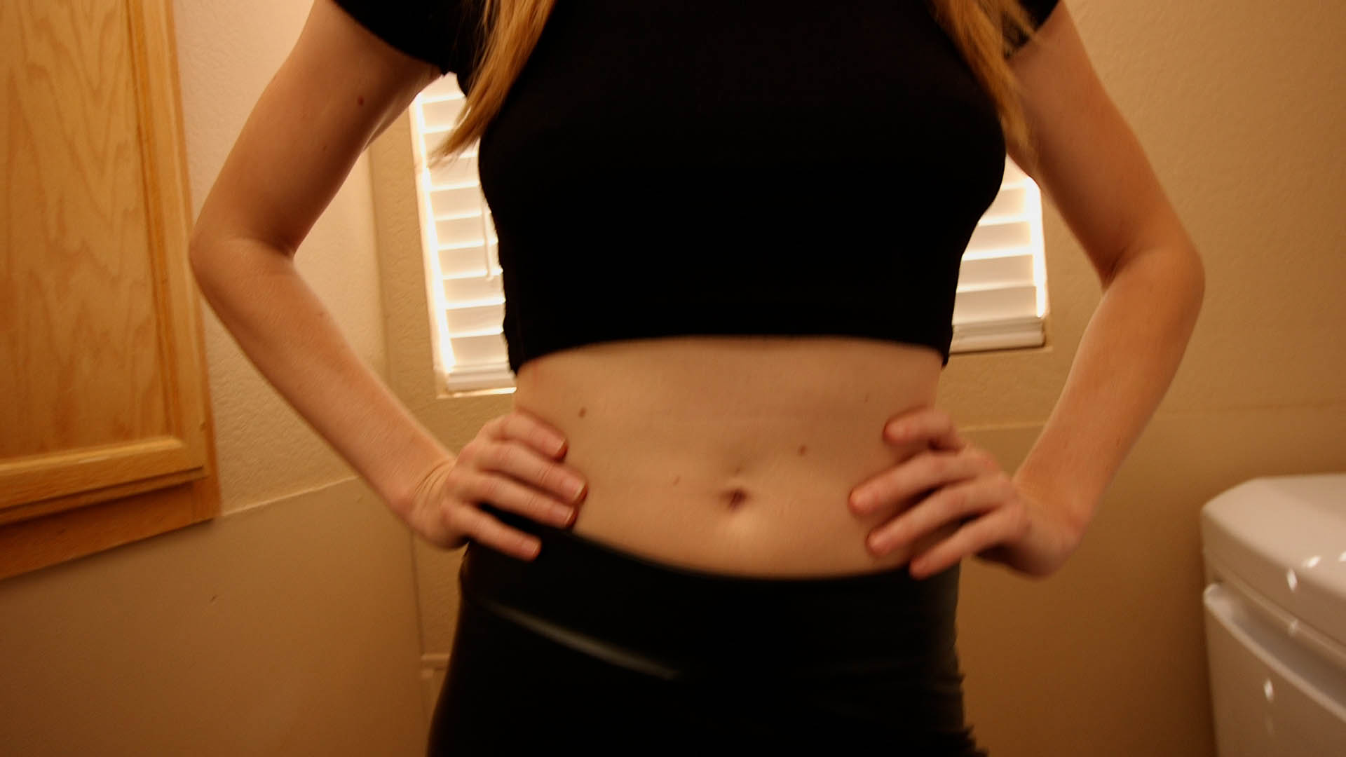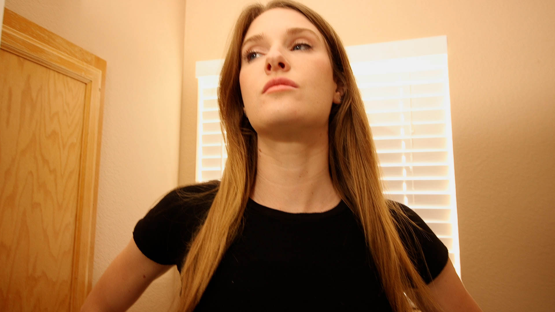 POV wakes up pinned to the wall, with Ashley Lane still stuck and Hannah standing between POV and Ashley Lane. Hannah takes Ashley Lane’s socks, as she keeps flailing. Hannah then pulls her pants off, exposing her pink panties. Ashley Lane struggles more violently, and her tone becomes more girly and desperate. Hannah walks off, and POV stares at Ashley Lane trying to free herself.