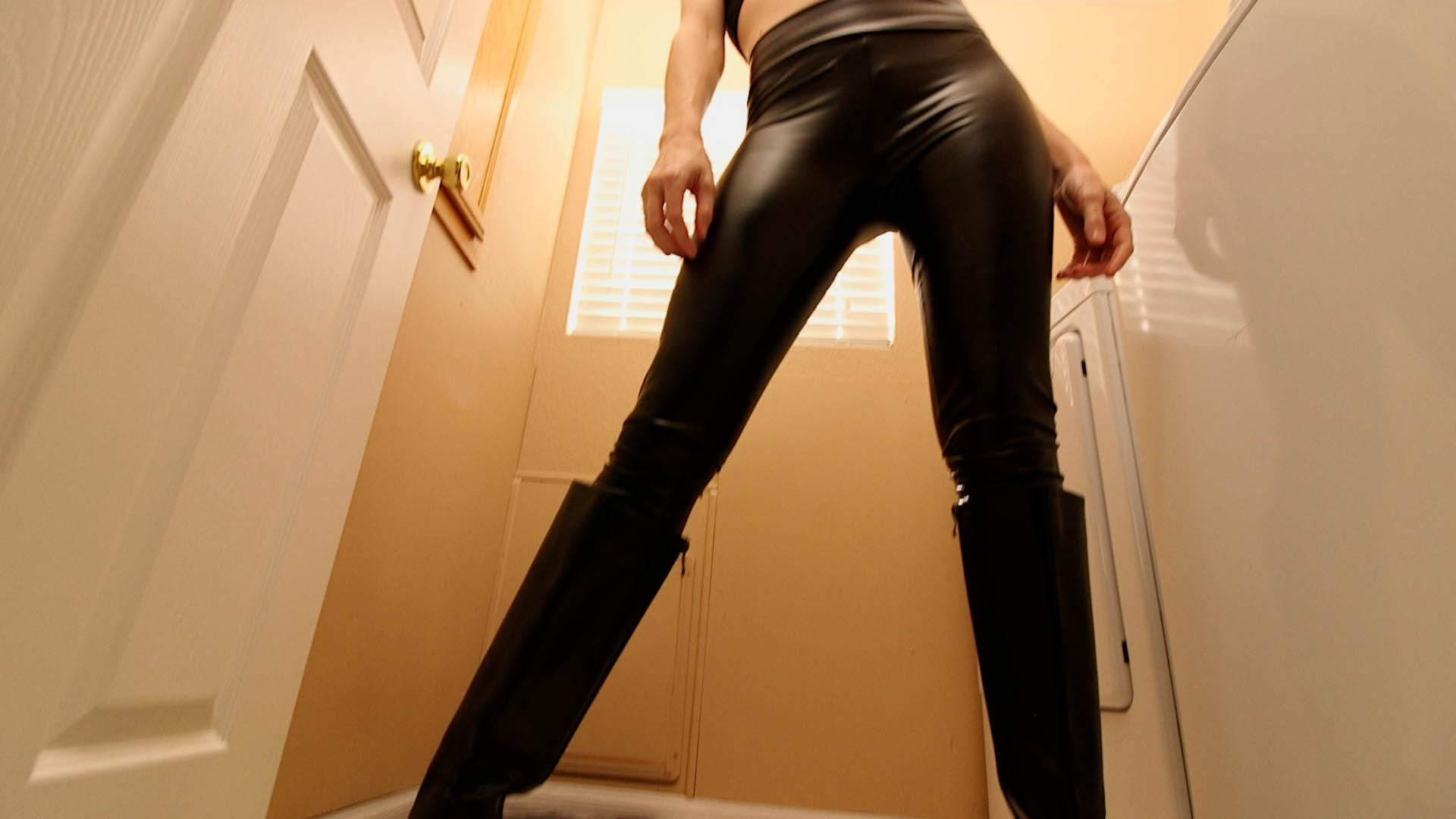 Ashley Lane shrunk POV down. She squats down to talk to POV, then picks him up and holds him over the washer/dryer. She makes POV look at her outfit, loosening her grip. POV jumps down to her feet, grabs onto her boots and unzips them. Ashley Lane loses balance and crashes headfirst into the washing machine. Ashley Lane kicks her legs furiously wanting to get out, and plants her feet on the washer to try to pry herself out. Hannah sneaks up behind POV, and things go dark and quiet.