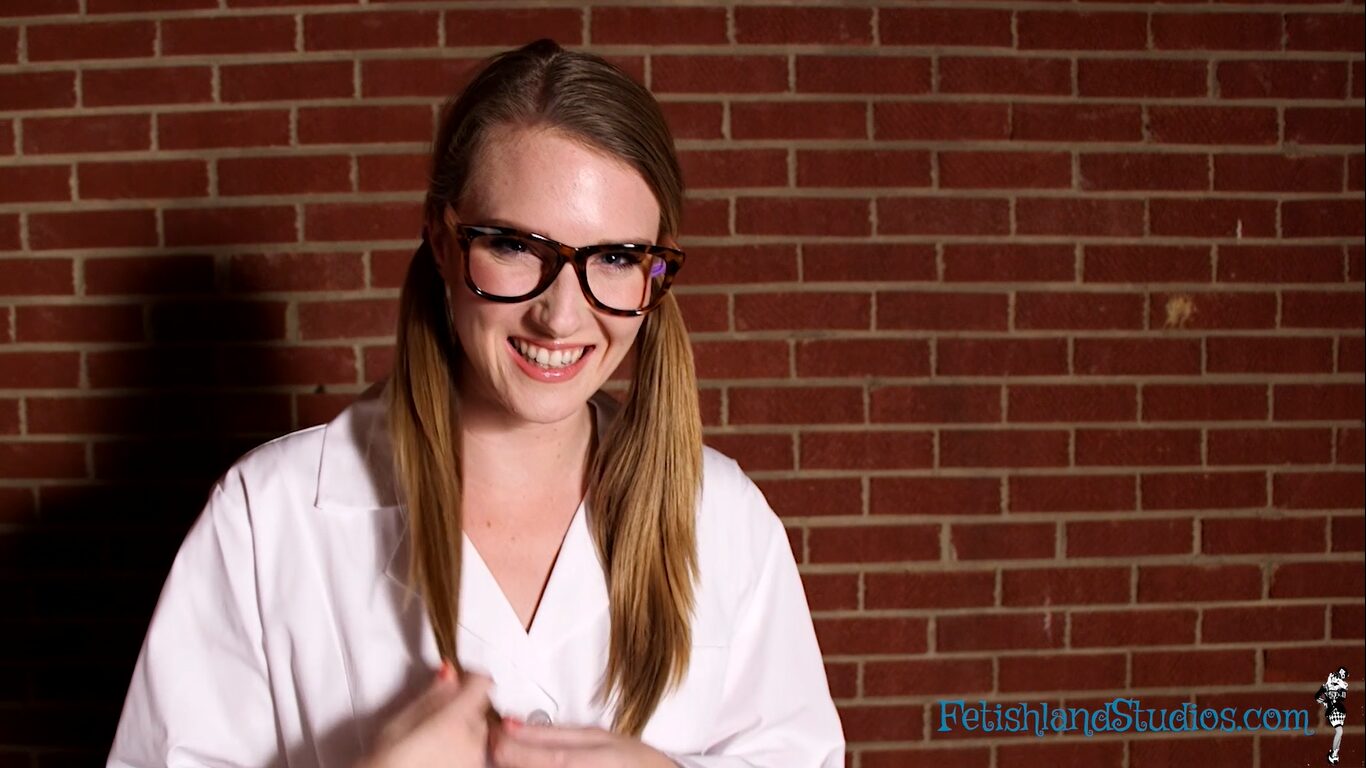 Ashley Lane skips off and returns in a very revealing school girl costume, short skirt, small top showing a lot of cleavage, heels, pigtails and glasses. Ashley giggles at him. When she looks straight at him, she feels light headed and the love spell gets even stronger. Ashley finds herself even more lovesick and extremely ditzy.