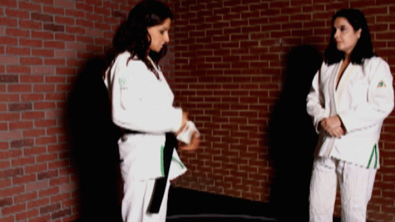 Sensei Hannah Perez awaits her student Tilly McReese for a private lesson. Tilly walks in and doesn’t impress Hannah to start. “What did you forget?” asks her sensei Hannah.