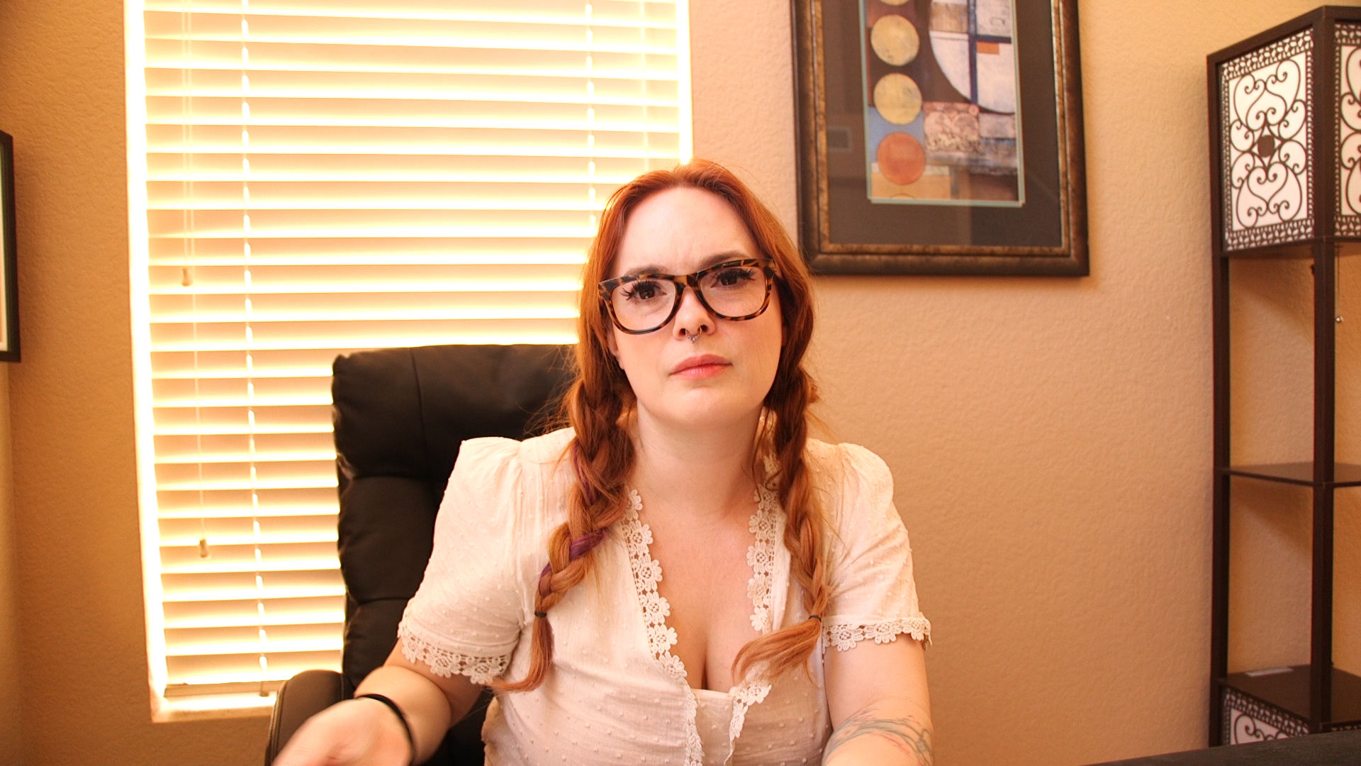 Office manager Summer Hart has been involved in some shady dealings. You (POV) come to confront her. If she wants to keep her position, Summer Hart will do exactly as you tell her. You decide you want to see your curvy redhead naked. She might not like it, but what choice does she have?