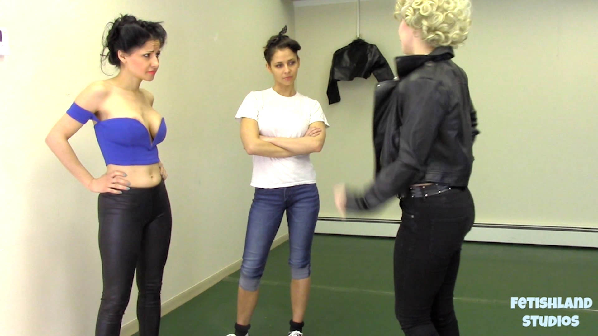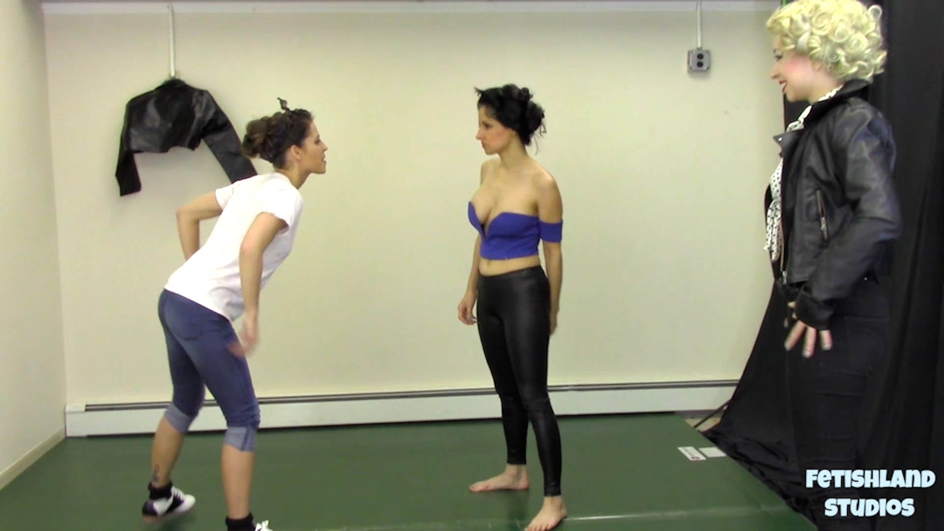 Cali Logan and Hannah Perez are two female gang prospects who are being judged by Lydia Lael, the gang leader of the Painted Pussies. Lydia announces that the two girls must compete with each other in a no holds barred wrestling match. She will award the lucky girl with her new member status and an original Painted Pussies leather jacket. Both girls are pretty tough but only one will be the winner. Who will it be? Lots of action packed girl/girl fighting and a great twist ending here! All the girls have an adorable retro look too. Custom 2015.
