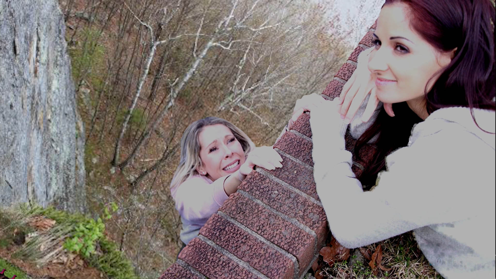 Nikki Brooks has found herself in an extremely compromising situation. She’d gone hiking and fell, catching herself just by the fingers on the ledge from which she now hangs. She’s calling for help when her biggest hater, Hannah Perez, walks up to her. Hannah is thrilled to see her rival terrified and totally at her mercy.
