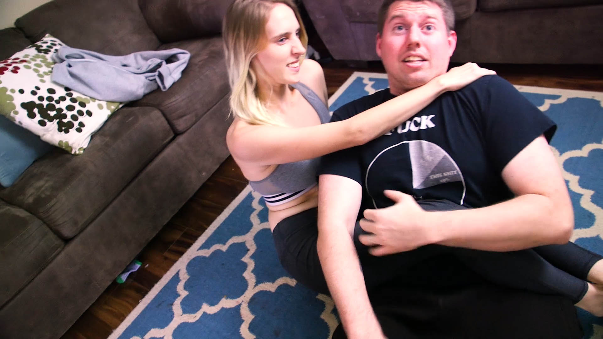 Hot blonde Cadence comes in from a shoot. She joins her roommate on the couch and tells him about her shoot she just did. She mentions it involved applying  scissorholds. He wants to see what the big deal is about scissorholds, since Cadence says she has fun doing them. So Cadence puts him in a couple different scissorholds such as head, neck, body and figure four scissors. Needless to say he doesn’t have much fun, because he .  But, at least Cadence got practice time in! starring Cadence Lux