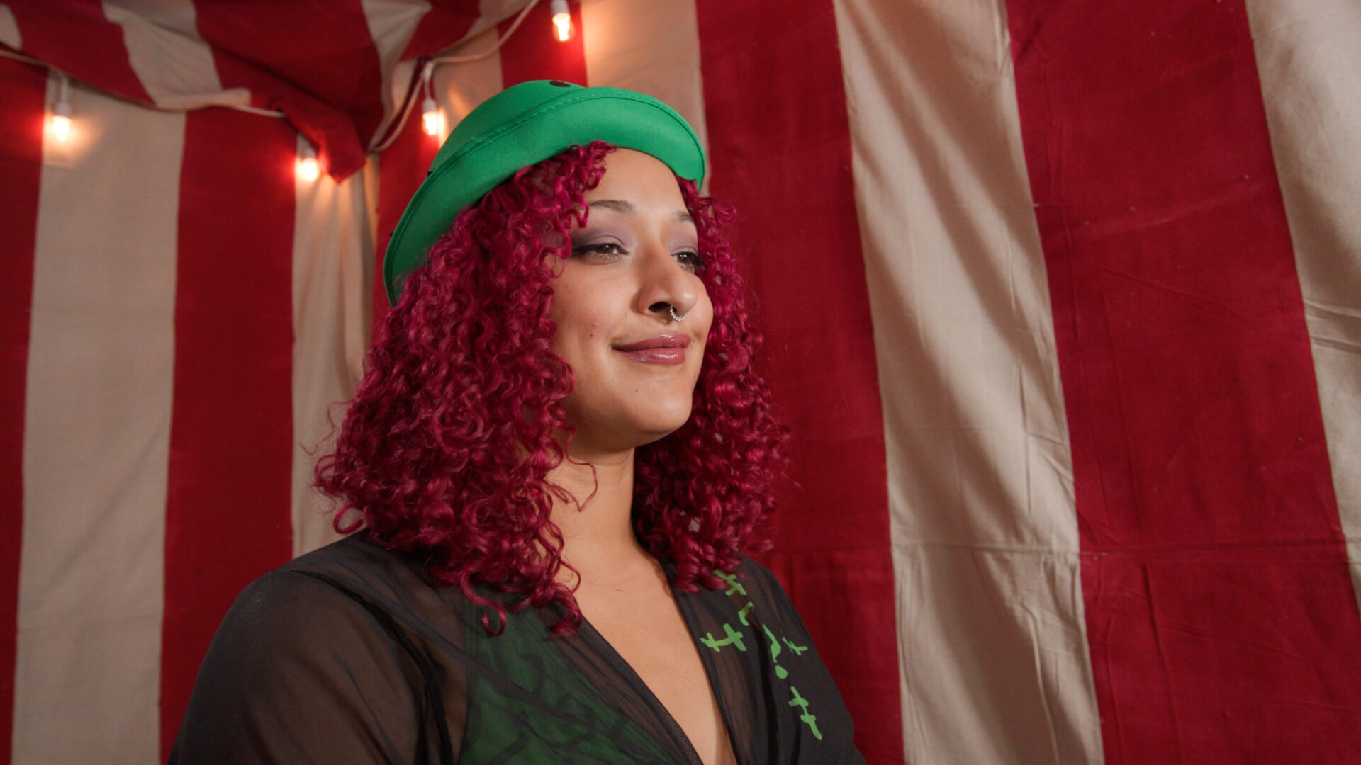 Catwoman (Agatha Delicious) invades Riddler’s (Daisy Ducati) lair. They argue, and Agatha reveals a pistol pointed at Daisy. Daisy makes Agatha open a box, and a green fog sprays into her face. She drops the gun, has trouble breathing, and drops to her knees. Daisy brushes the gun to the side and goes to Agatha. She assaults her with her cane, picks up Catwoman’s whip and chokes Agatha. She tightens her grip and Agatha goes limp. She collapses to the floor as Daisy releases the whip.