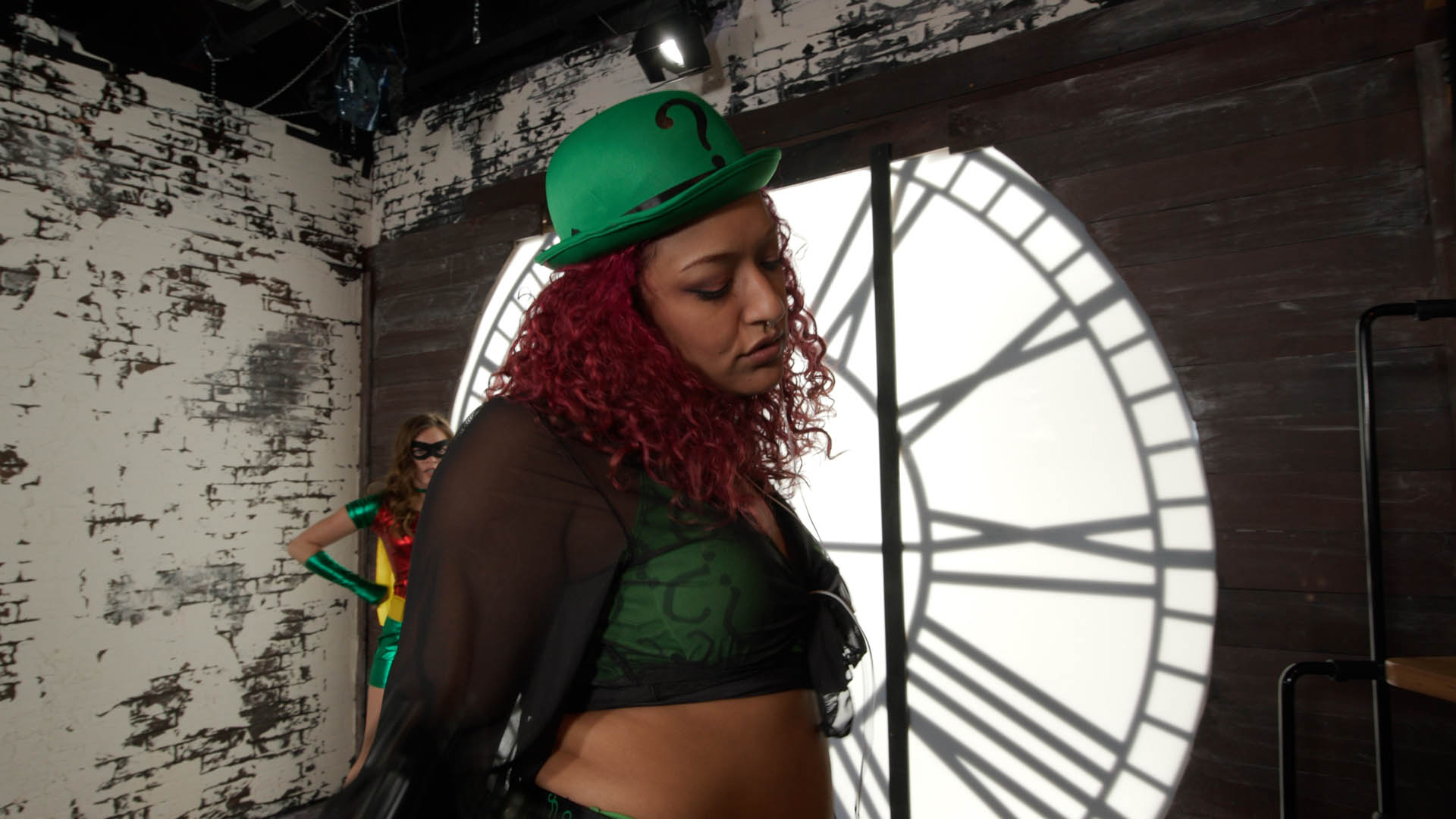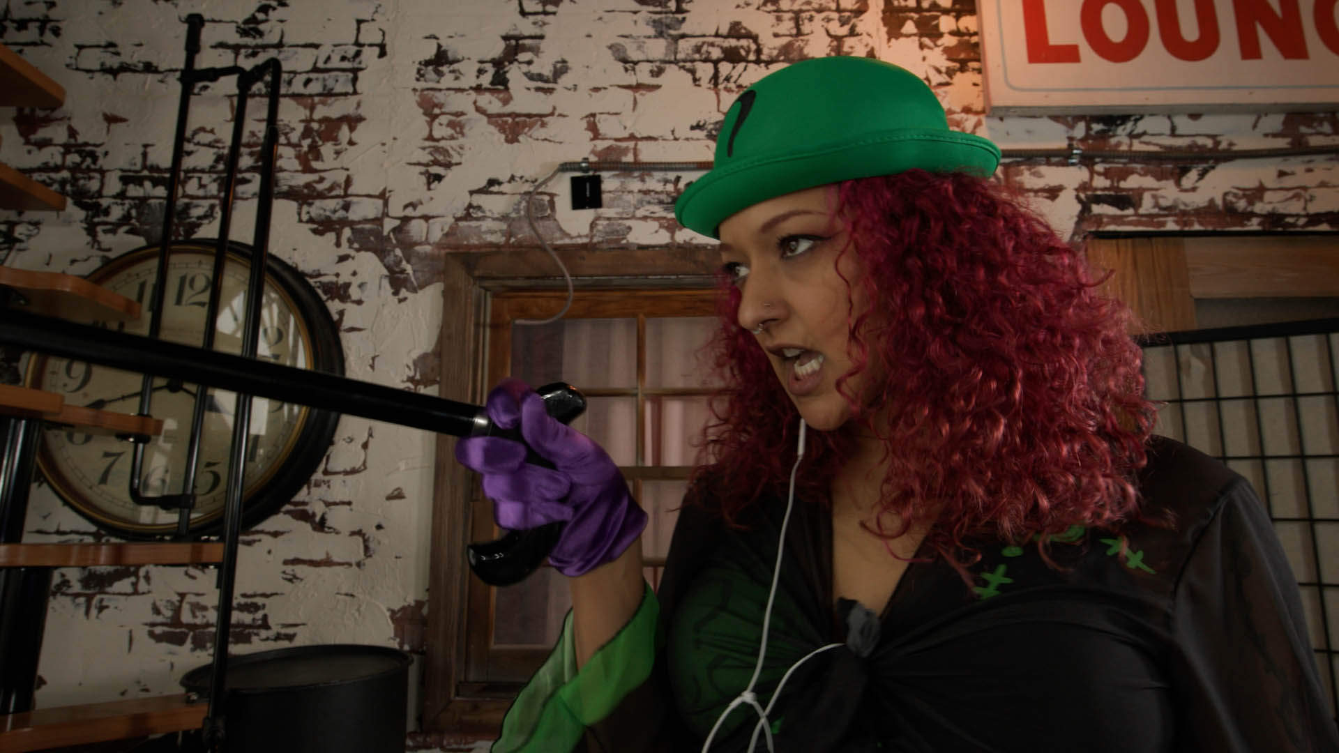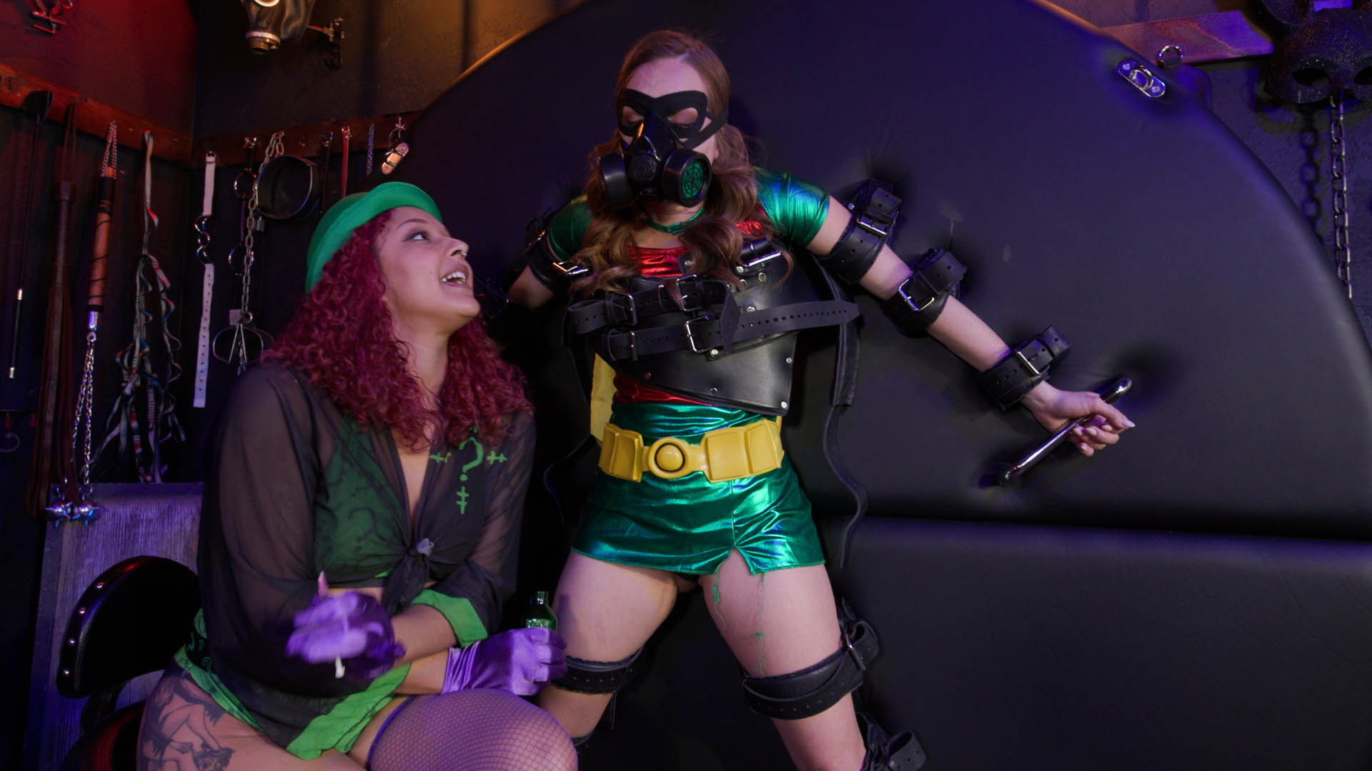 Katie Kush, Robin, and Jolene Hexx, Batgirl, search for the villainess Daisy Ducati, Riddler, but soon discover that the hunters become the prey. Daisy Ducati first takes Katie Kush in her trance and makes her trap Jolene Hexx and then she slices Jolene’s throat using the crowbar, after which she also kills Jolene Hexx with the same crowbar. Realizing the Toxin in Katie Kush’s gas mask, she puts her out in the end.