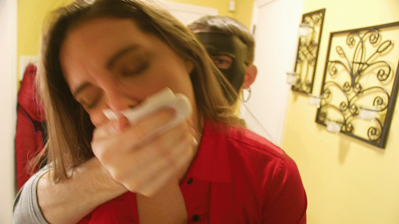 Businesswoman Sadie Holmes comes home from work early one afternoon. She walks in the door, removes her jacket and hangs it up. Sadie takes a few steps forward but is grabbed from behind by a masked intruder. The assailant clamps down on her mouth with a cloth that makes Sadie tired. Sadie’s body goes limp, and the man lifts her up and carries her away over the shoulder.