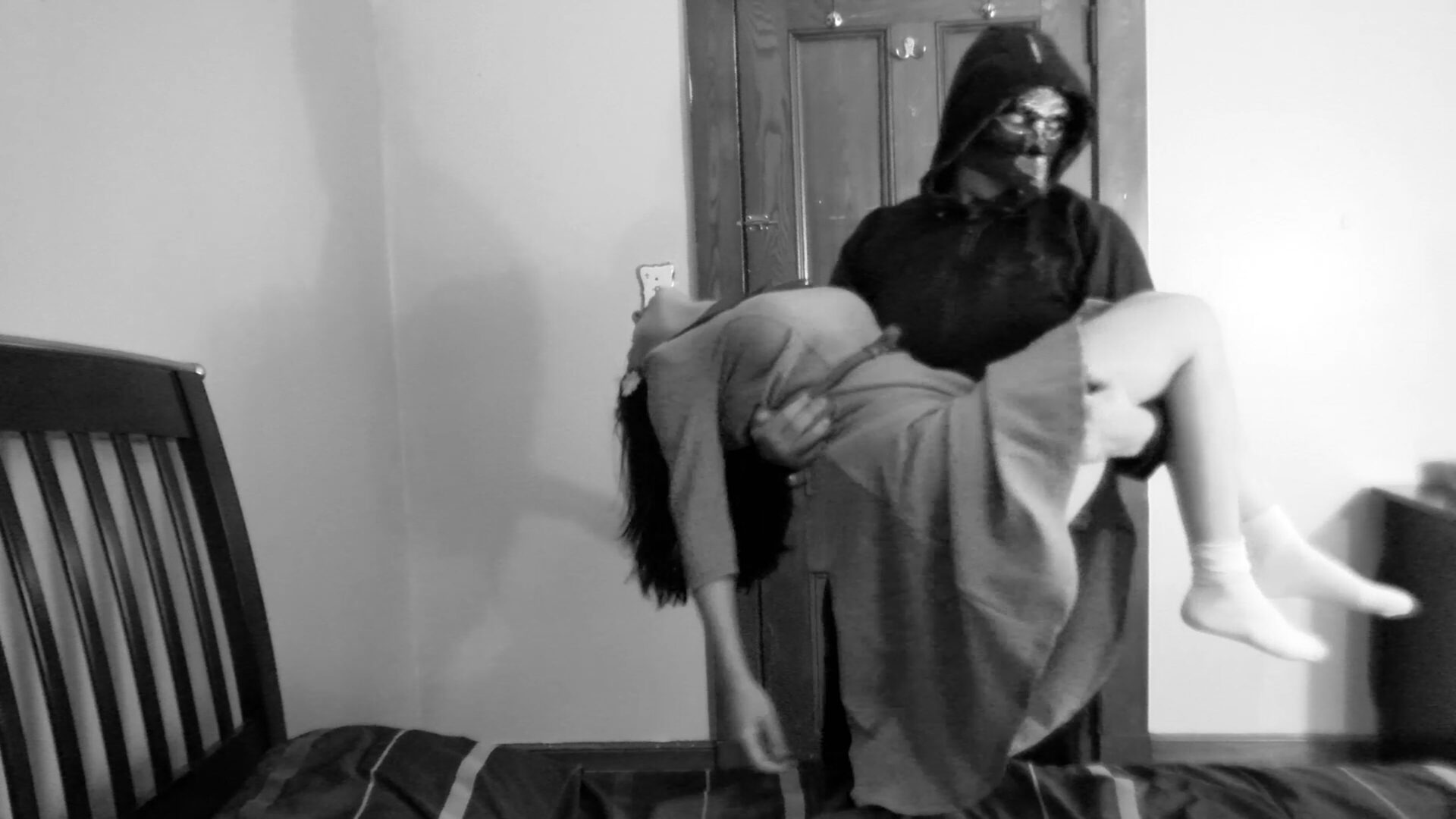 Hannah Perez is about to enter The House of Nightmares. Every night, she has lapses in memory and can’t seem to be able to tell what is dream and what is reality. Tonight her nightmare begins as she creeps in the house, trying not to make a sound. She slowly ascends the stairs and pauses at the top with dread, knowing something unpleasant awaits her. At last she is approached by a masked villain. She gasps and faints in his arms. He ragdolls her lovely limp body for several minutes, doing plenty of limp play and eye checks before picking her up in an OTS carry and fading into the darkness. She awakens (or does she?) in an unfamiliar place, an unknown time later. She notices she is wearing something completely different than she last remembered. It must have been a dream, she thinks .until the nightmare begins again. The same masked villain approaches her, and her nightmare repeats itself …and again. Will her nightmare ever end?