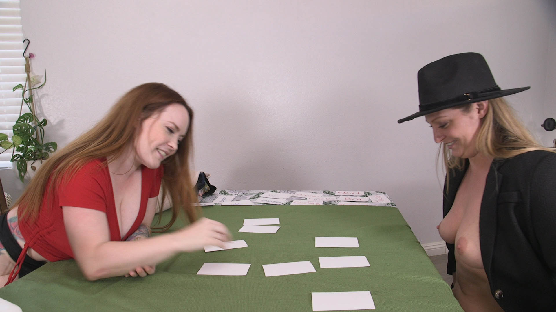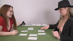 Summer Hart and Veronica Weston played a stripping game in which the loser has to give a BJ to the winner with a messy facial.