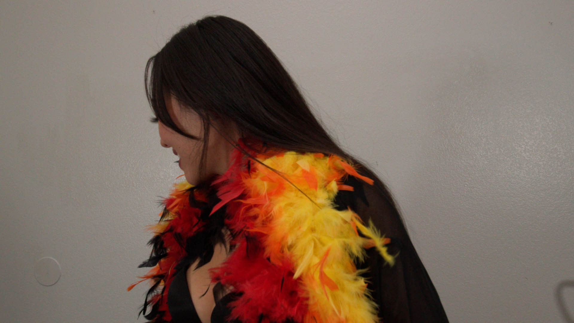 Sumiko Dreams is the world defending wrestling champion, known for her fantastic feathery entrances.