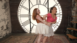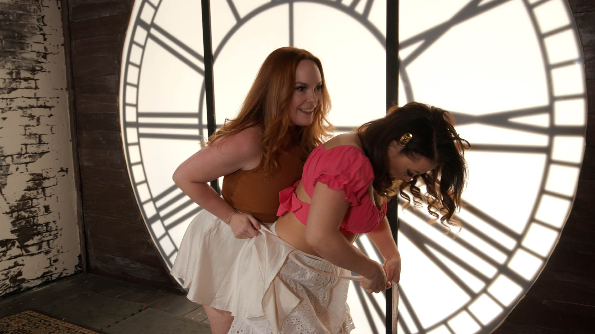 Carmen Valentina and Summer Hart conjoined at the hips (front to back) clumsy, bitchy, and bickering, nymphomaniac bimbos who can’t agree and constantly get in each other’s way.