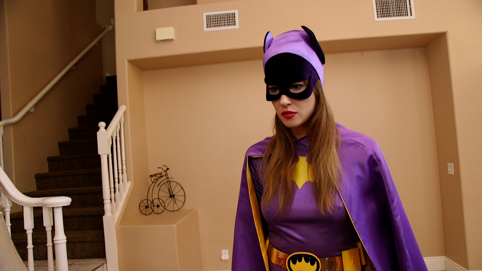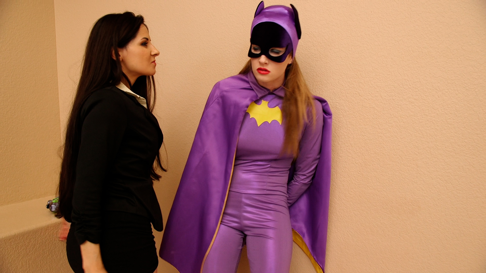 Batgirl (Ashley Lane) finds herself in a world of trouble while on  a mission to take down villainess Hannah Perez.