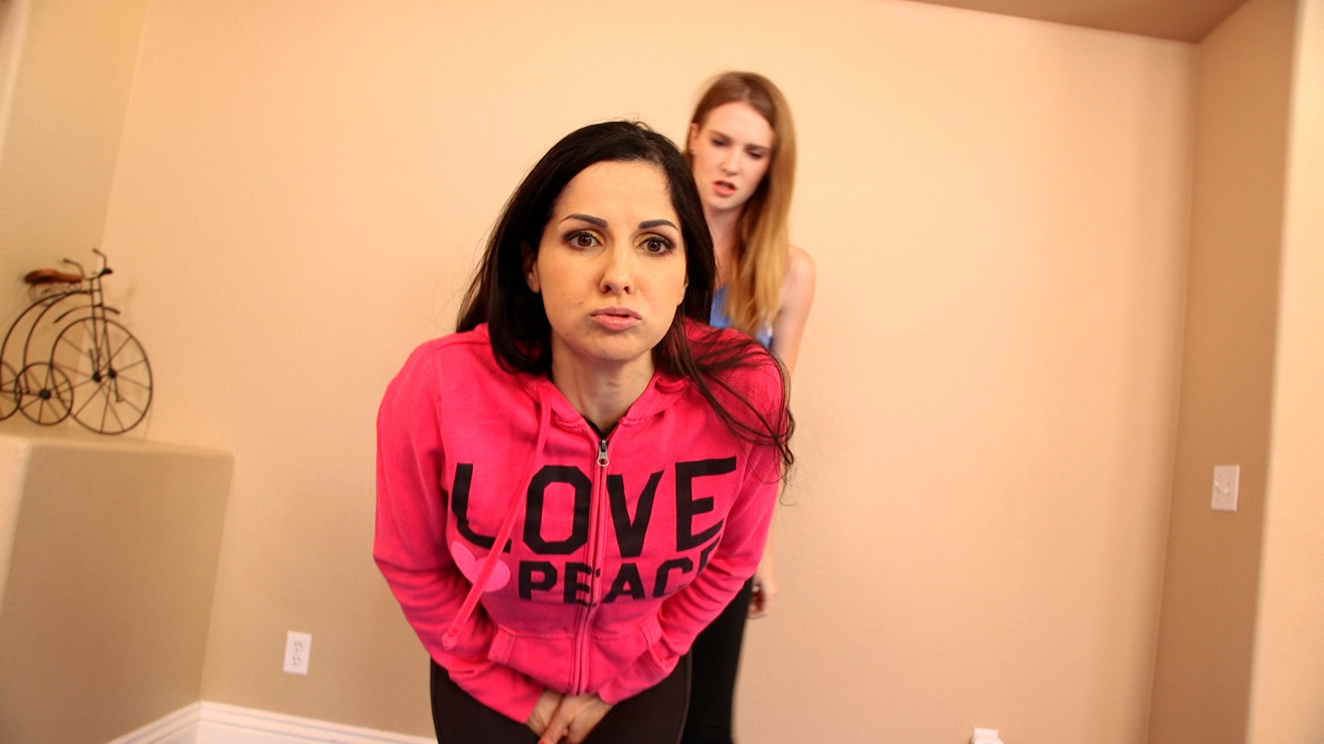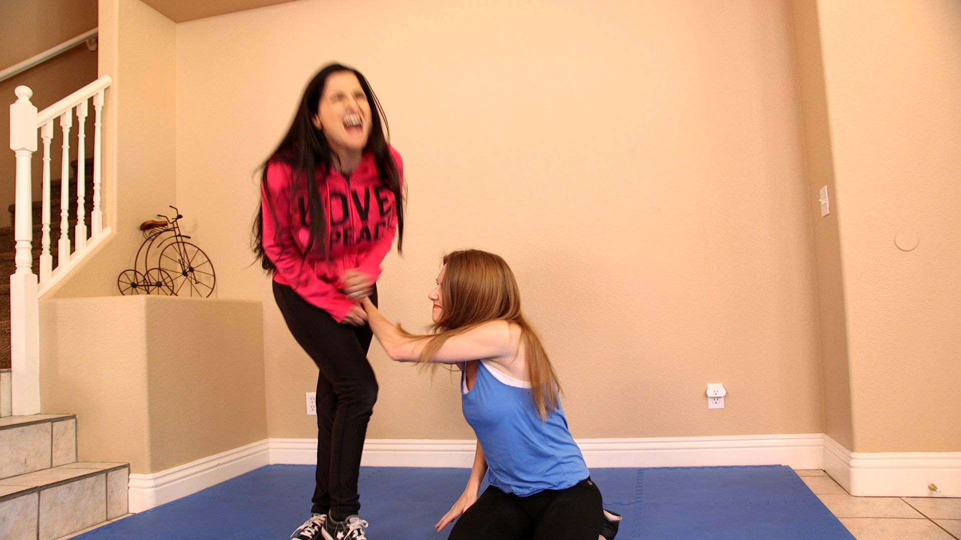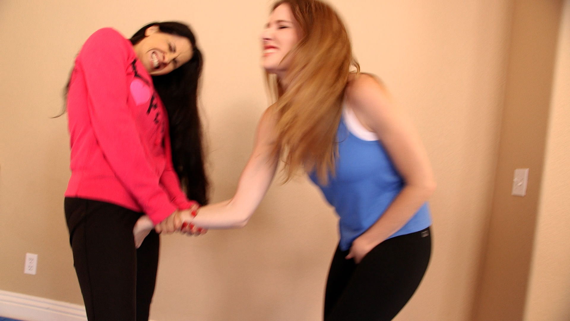 Ashley Lane faces the camera, then Hannah Perez comes from behind and lands a
