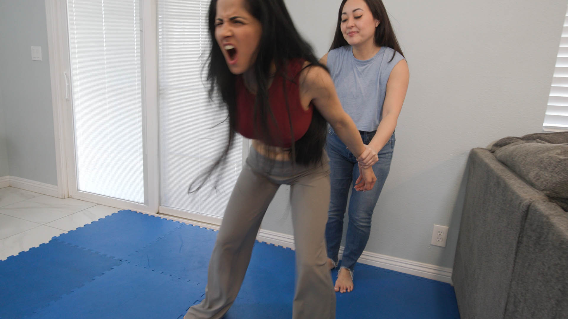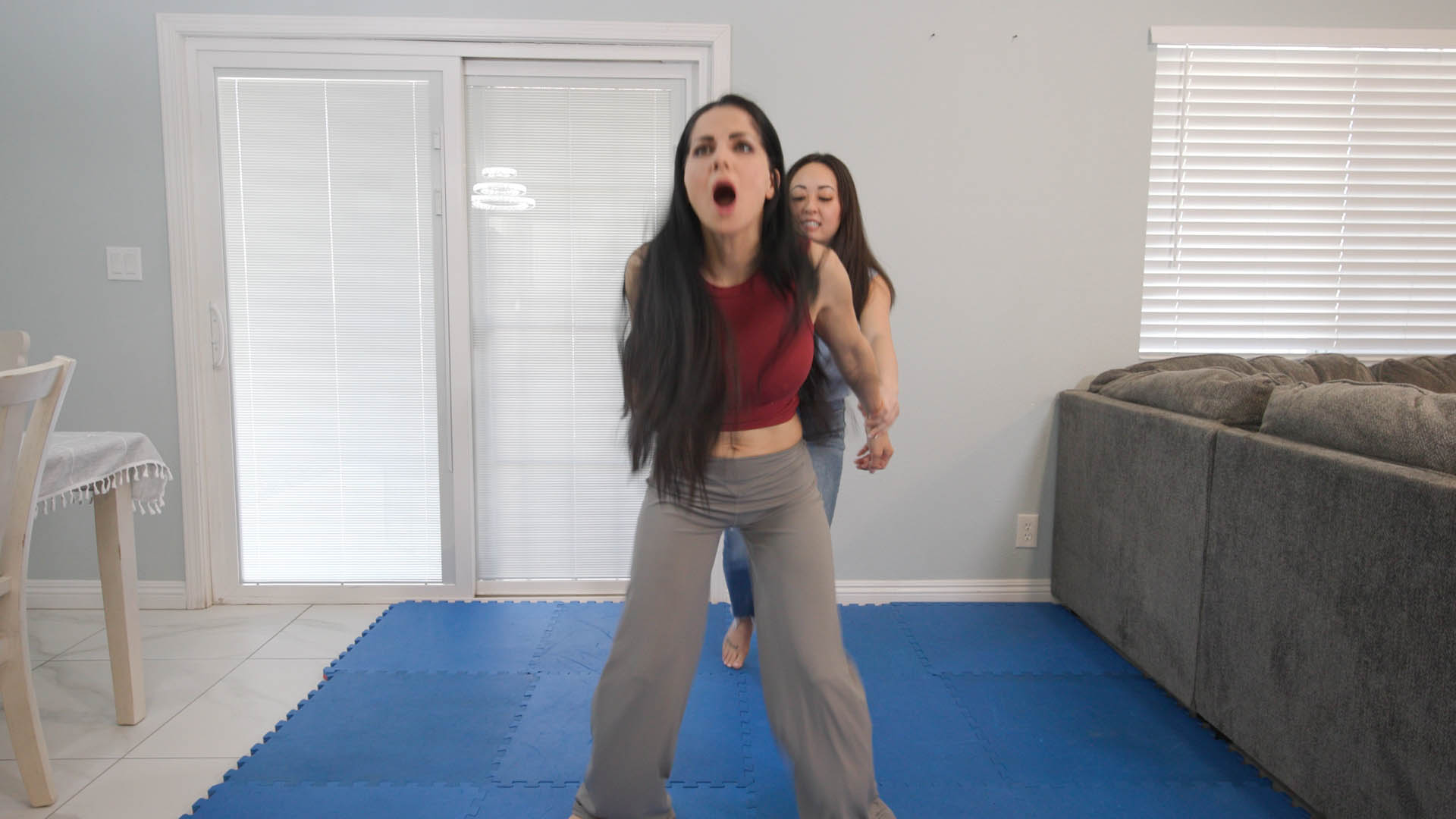 Hannah Perez’s boyfriend finds out she cheated on him and places an order on the Ass Kicking App for Sumiko Dreams to kick Hannah Perez’s ass, focusing on her crotch. Sumiko Dreams arrives at Hannah Perez’s door and, after confirming it’s her, she gives Hannah Perez a kick to the crotch. Hannah Perez is confused, and Sumiko Dreams begins a one-sided cuntbusting beatdown. Hannah Perez tries to fight back, but Sumiko Dreams counters her attacks, responding with cuntbusting. She gives kicks and knees to Hannah Perez’s cunt, snapping her head back with face punches, choking her with throat jabs and making her sprawl with face kicks. When Hannah Perez drops to the floor, she gets her back up, dominating her as she gets increasingly groggy. Sumiko Dreams lectures her about infidelity while playing with her like if she was a punching dummy, and doing different combos. Hannah Perez tries to kick Sumiko Dreams, but she catches her leg and lands multiple kicks to her pussy. Hannah Perez tries punching her, but Sumiko Dreams ducks, grabs her arms behind her back and repeatedly kicks her pussy from behind. She keeps giving her cuntbusting punishments for a long time. When Sumiko Dreams decides to finish Hannah Perez off, she stands her up, spreads her legs and gives multiple rapid-fire kicks to her pussy, then speedbag punches. Sumiko Dreams stands up, wraps her arms around Hannah Perez, grabbing her ass checks, and knees her pussy until she passes out. Sumiko Dreams takes a photo of Hannah Perez and sends them to her boyfriend.