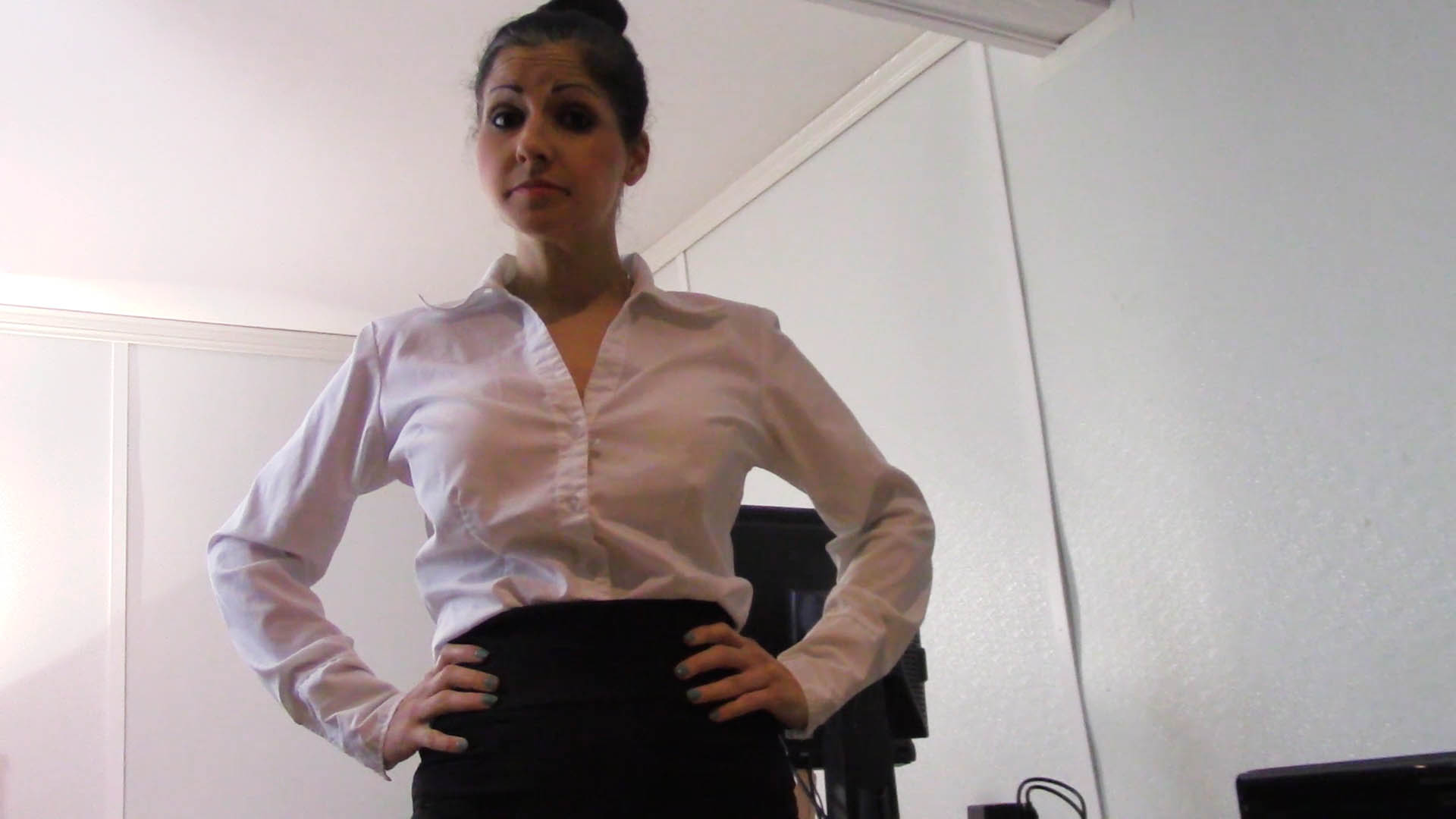Miss Hannah Perez is sitting behind her desk and you have been told to stay after class. Once the class has been dismissed, she walks in front of her desk and stands in front of you and asks if you know why you are here. Of course you know why. You have been acting very inappropriately towards her, she says. You’ve been staring at her chest, butt, and legs. You have also made your fellow female classmates feel very uncomfortable and it’s time that teacher teaches you a lesson. As a Catholic school teacher, Ms. Perez simply cannot sacrifice her reputation by allowing this behavior in her classroom. While she is confronting you, you use several manipulation tactics to flip the tables on her. At first you play dumb, then you admit to having an attraction for her, and finally you tell her that she’s a prude and can’t even say the word penis. This obviously starts you laughing, but Miss Perez doesn’t find humor in it. On sheer principle, she spits out the word. Now she has become rather flustered with your laughter and is taking a different approach to handling you. She wants you to know that there is nothing funny about the human body and she decides you need a lesson in human anatomy. So she starts undressing herself and giving you an anatomy lesson while she does this. You, of course, are just watching in amusement. She strips down to reveal all her female parts and finally commands that you show her your enormous cock. She catches herself at the end, and realizes what she has done. In a rage, she shoos you away, grabs her clothes, and runs away trying to cover herself. Shot POV. Custom 2015.