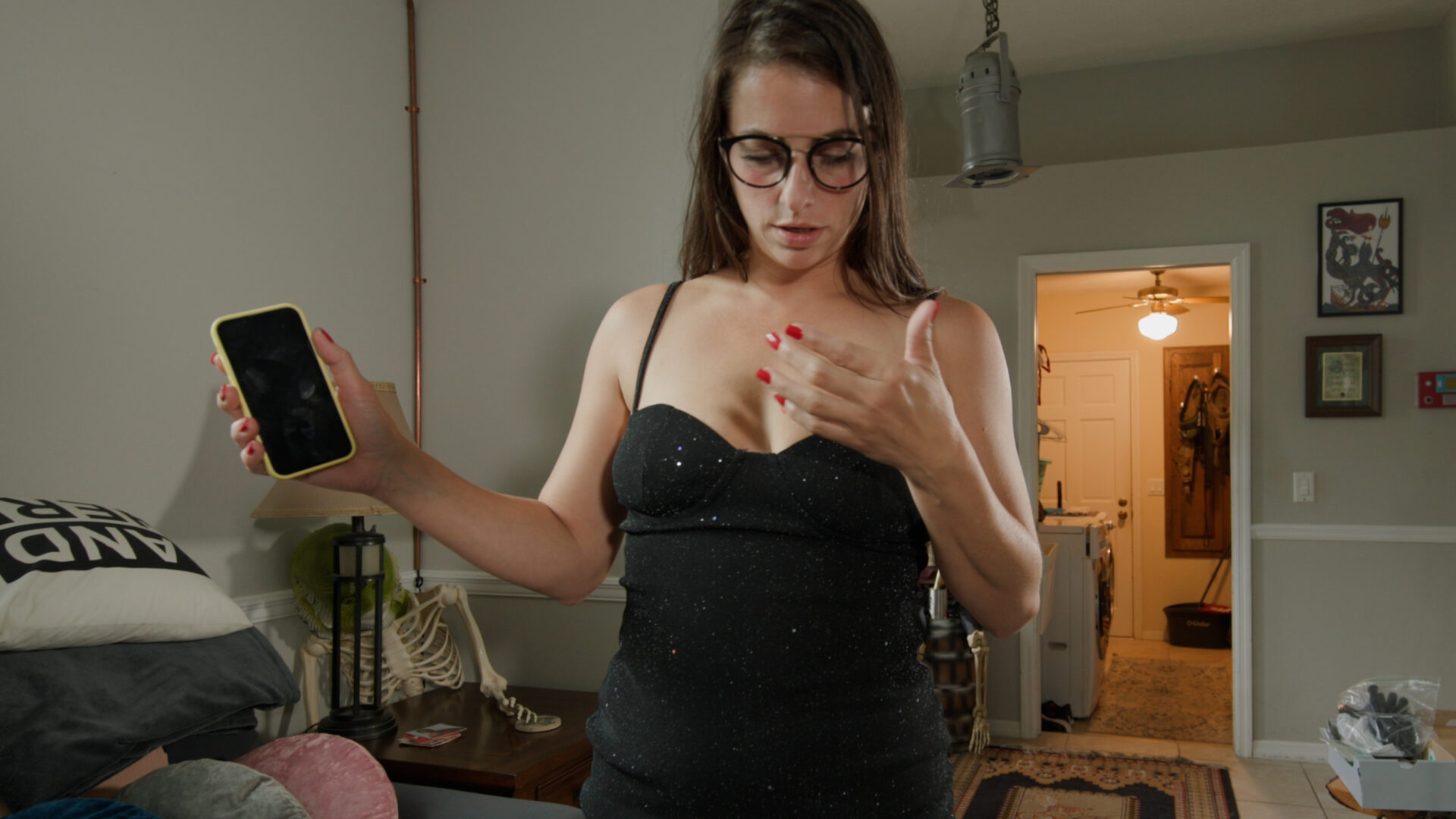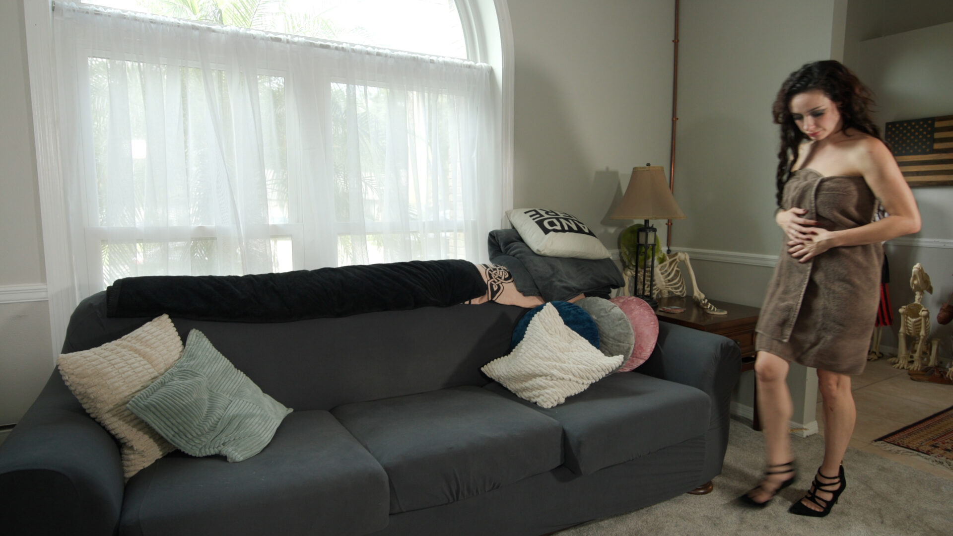 Hannah lies dead on her back on a bed, just strangled by POV. POV checks her pulse and wags her face back and forth to make sure she’s dead. They strip her off her clothes, rolling her over and sitting her up. They play with her limp body, dropping her arms and legs, lifting her head and letting it drop, lifting her wrists and letting them flop back. They run their fingers through her hair and wag her face back and forth. They fondle her breasts and pose her in various ways (centerfold model, arms stretched out above her head, out to side and dropped across her body, legs spread, hips turn to a side, head tilted back)