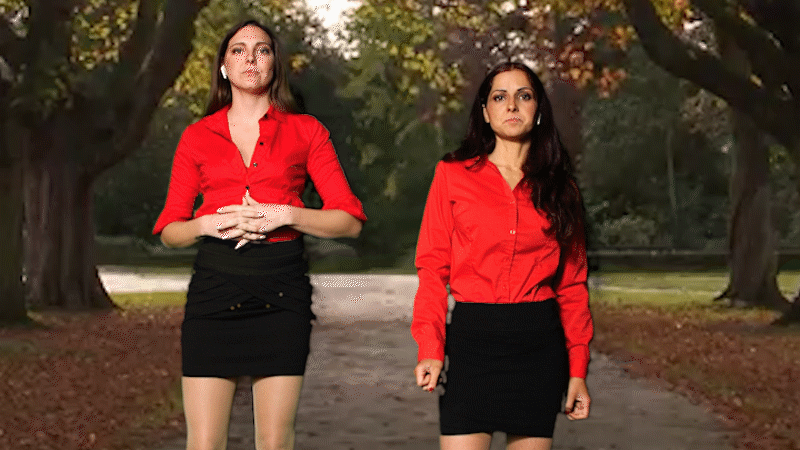 Hannah Perez is standing before the camera ready to deliver the latest news, but wondering where her co anchor is. Well here comes Sadie Holmes right before they go live. Just great they both happen to look alike. Wearing their red tops and black skirts. And now after their snippy comments they are going Live with the latest news. They begin with their story that is currently happening with a robbery at a bank that has 3 hostages. But that isn’t the only thing being robbed. Each one, Hannah and Sadie, try to over talk the other with the news. Which leads Hannah in her attempt to sabotage Sadie first. This is a back and forth battle and they both don’t realize that their clothes are disappearing. They just keep hitting the device making one layer of clothes disappear. During their News Report they make snide comments about being cold and needing clothes not realizing that they both needed clothes. Until, they get to the end and now they both find out they are completely naked. They can’t believe this and they ask the other how this happened. They both were trying to sabotage the other but not they both are. The latest news has two naked women trying to get over on the other.