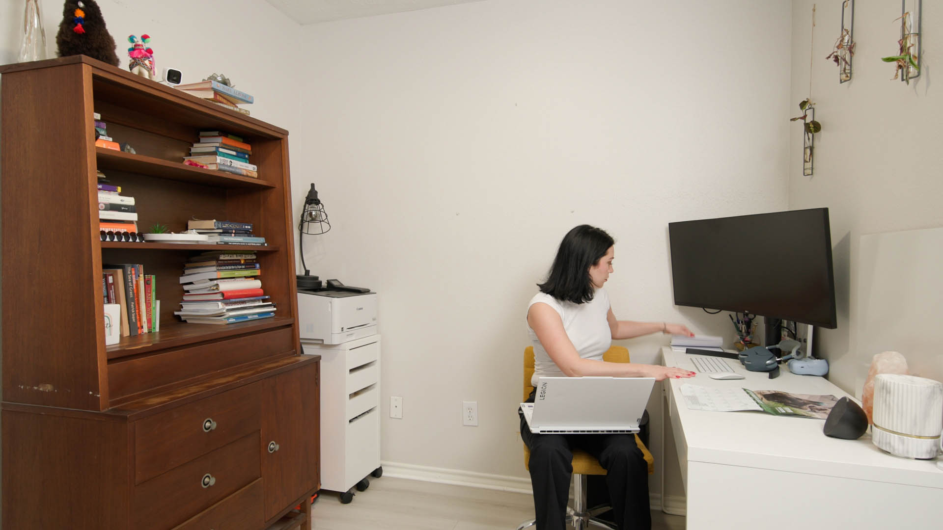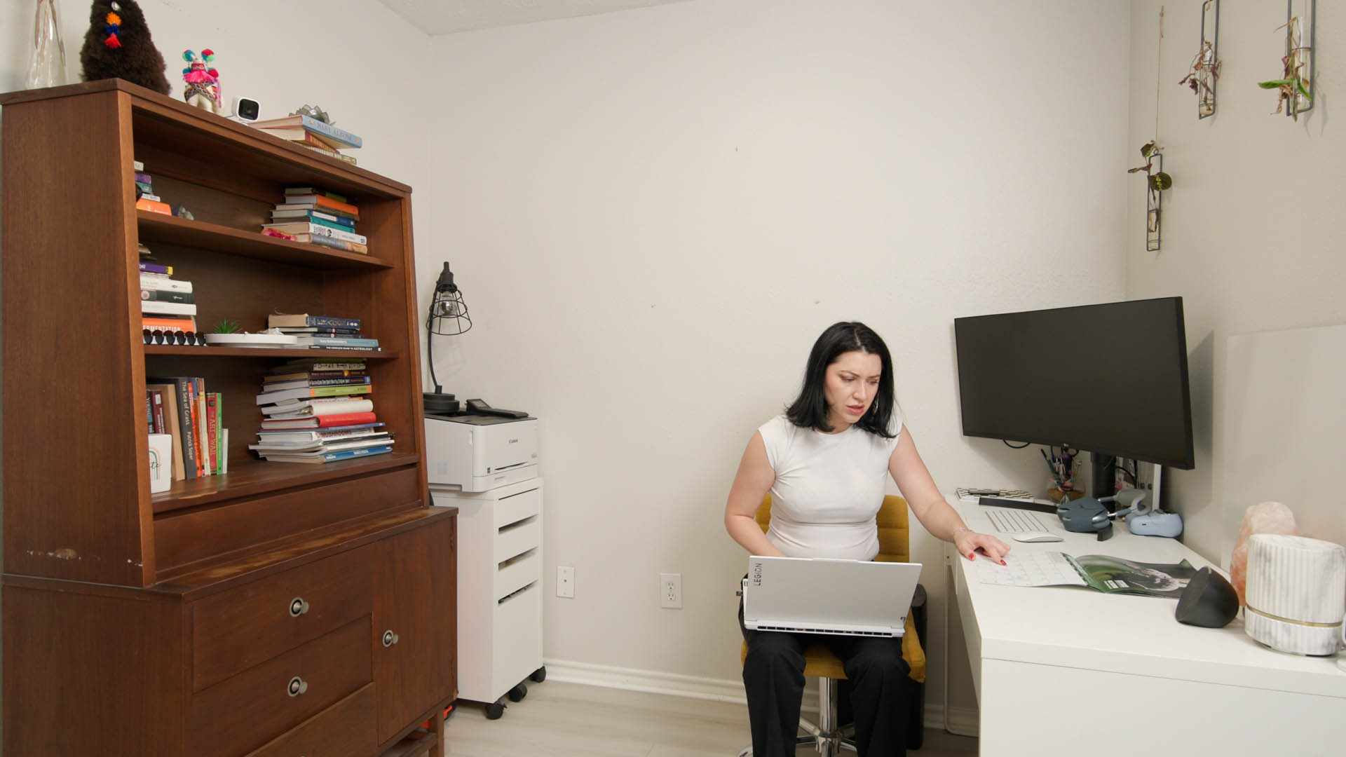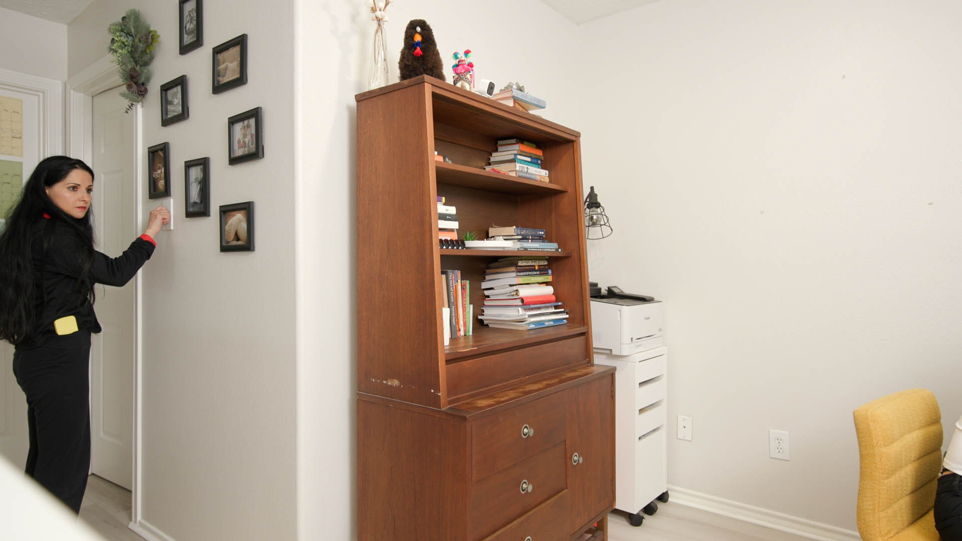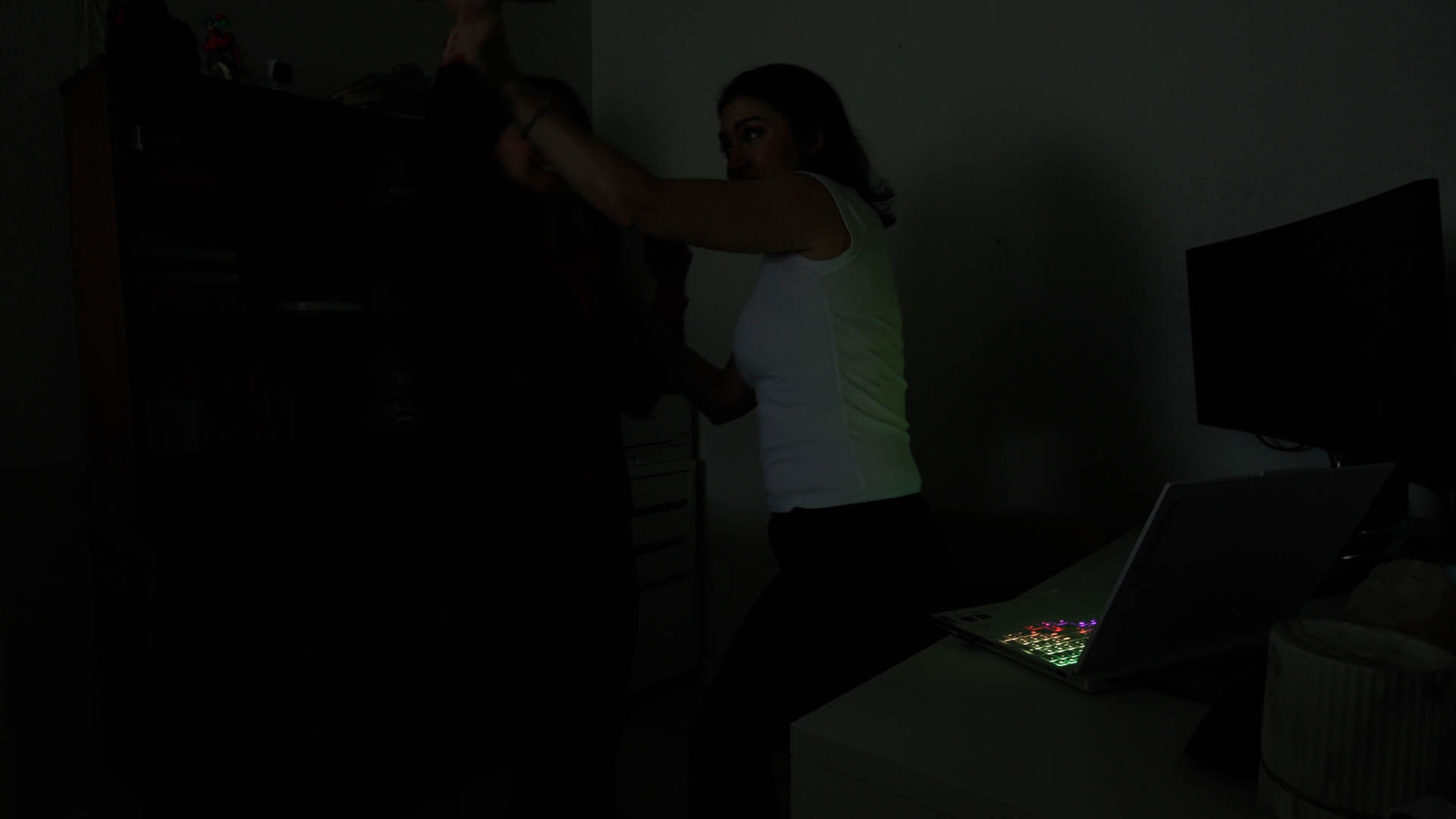 Hannah is a serial killer, plain and simple. Paisley has long suspected the predominant mayor for a long period of time as being the killer who has stalked their small town for months now. But either the cops don’t believe her or they are in league with Hannah. But Paisley can’t sit by while more people disappear. So she decides to take things into her own hands and find the evidence she needs. Breaking into Hannah’s home during the yearly townhall party is her best chance to get it. As she slowly but effectively breaks in she begins to search the mayors house. Going room by room until she finally finds a laptop hidden behind a bookshelf. As she looks looks for a way to unlock it, she spies a date on the nearby calendar that has each month been repeatedly circled. It has no words, but it is around the time a person has disappeared each month or two. She deduces that Hannah changes her password each month to reflect when her next killing will be. Unlocking the laptop, she finds photos and Hannah’s electronic journal detailing each and every murder. She also finds details on associates and people who are next on Hannah’s list. She takes out her USB drive and quickly begins downloading all the evidence needed. While this is happening, however, we pan to a camera on the ceiling that has been on this whole time. Then we pan to Hannah arriving home, having quietly left her car parked down the street. She opens the front door quietly and makes her way slowly and quietly to where Paisley is currently. Paisley is too distracted to hear anything as Hannah retrieves a knife she has hidden and makes her way into the room, pulling out her phone she turns off the lights with the only light coming from the laptop.