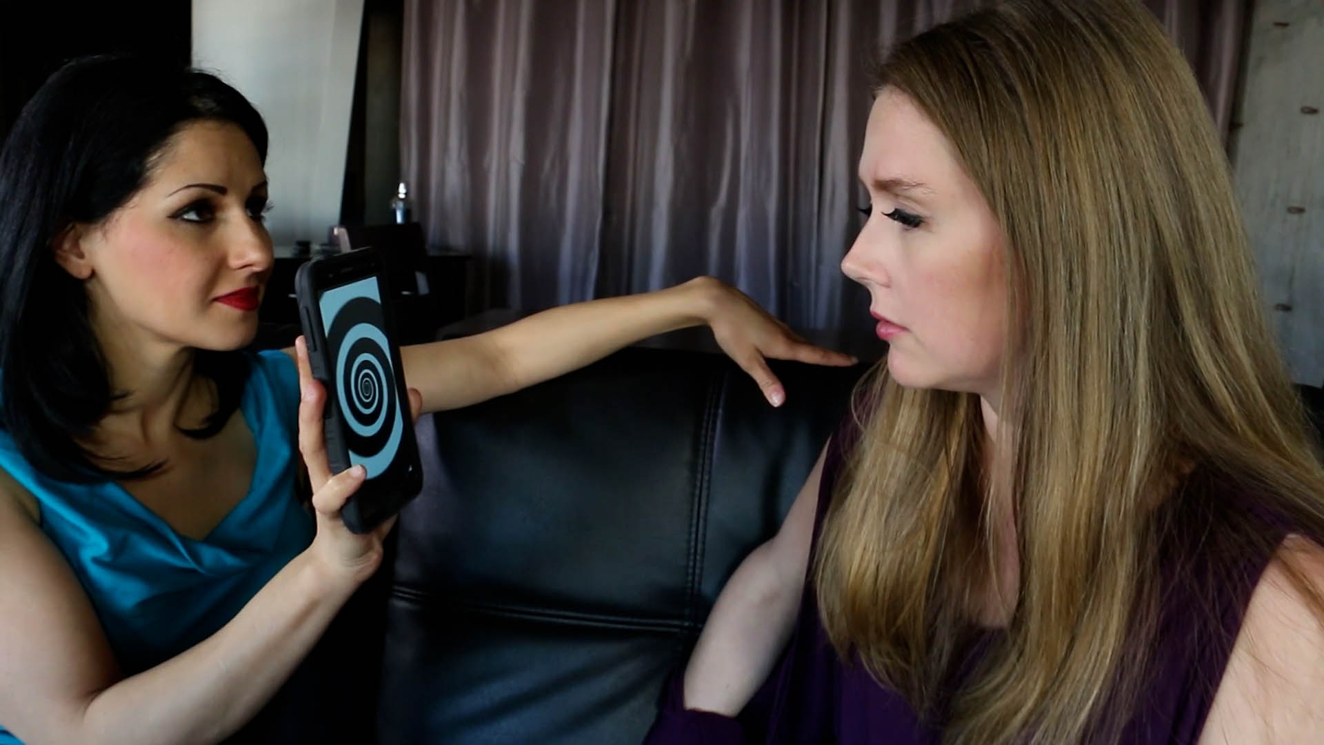 You have arrived for a parent-teacher meeting with your son’s teacher, Hannah Perez, and you have been dreading it for months. You know all she’s going to tell you is that his grades have been suffering, blah blah blah. You and the wife have not been getting along great and that’s probably why. Whatever, you’re not interested in hearing some condescending prude like Ms. Perez tell you how your domestic situation should be different. Today you’ve decided you are going to put both of these women in their place. You’ve figured out how to control the minds of women with this “magic trick” you’ve been researching. You begin by meeting with Ms. Perez and as soon as she starts talking you begin taking control of her. You tell her that she will follow you to your office at work for a chance to get to please you alone. Then you will dress her the way you believe women in the workplace should look in today’s world. She agrees to obey your commands. Now you have Ms. Perez follow you back to your house under the guise of having a meeting with you and your wife to discuss your son’s grades, which your wife has been nagging you to coordinate. You have mesmerized her to take control of your wife and make two completely mindless obedient slaves of them! And, it’s always been your dream to have a threesome, so today, you will have your wish. You command the two women to enjoy each other for your foreplay pleasure and they do. When you are ready for them to submit to you completely , you give the word and now have two mindless sluts ready to serve you and only you.