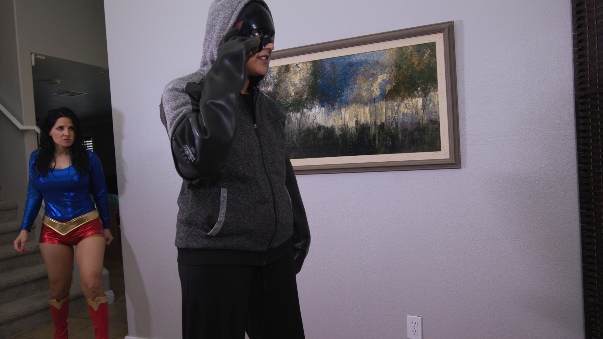 Ultragirl Hannah Perez fights off a villain, but is eventually overpowered and hogtied in a bathtub filled with water. Ultragirl ultimately escapes, fight, and triumphs over the villain.