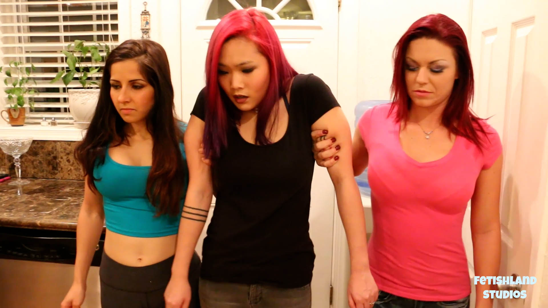 Lea Hart is a part of an organization and has revealed classified information to an outside party. As punishment for her treason, she will have to be escorted to her fate of doom by fellow members Hannah Perez and Sarah Brooke. She is escorted by the arms around the premises of her final location. Following protocol, Lea is punched in the belly several times at some point before continuing her journey. Tight arm grips!! Custom 2016