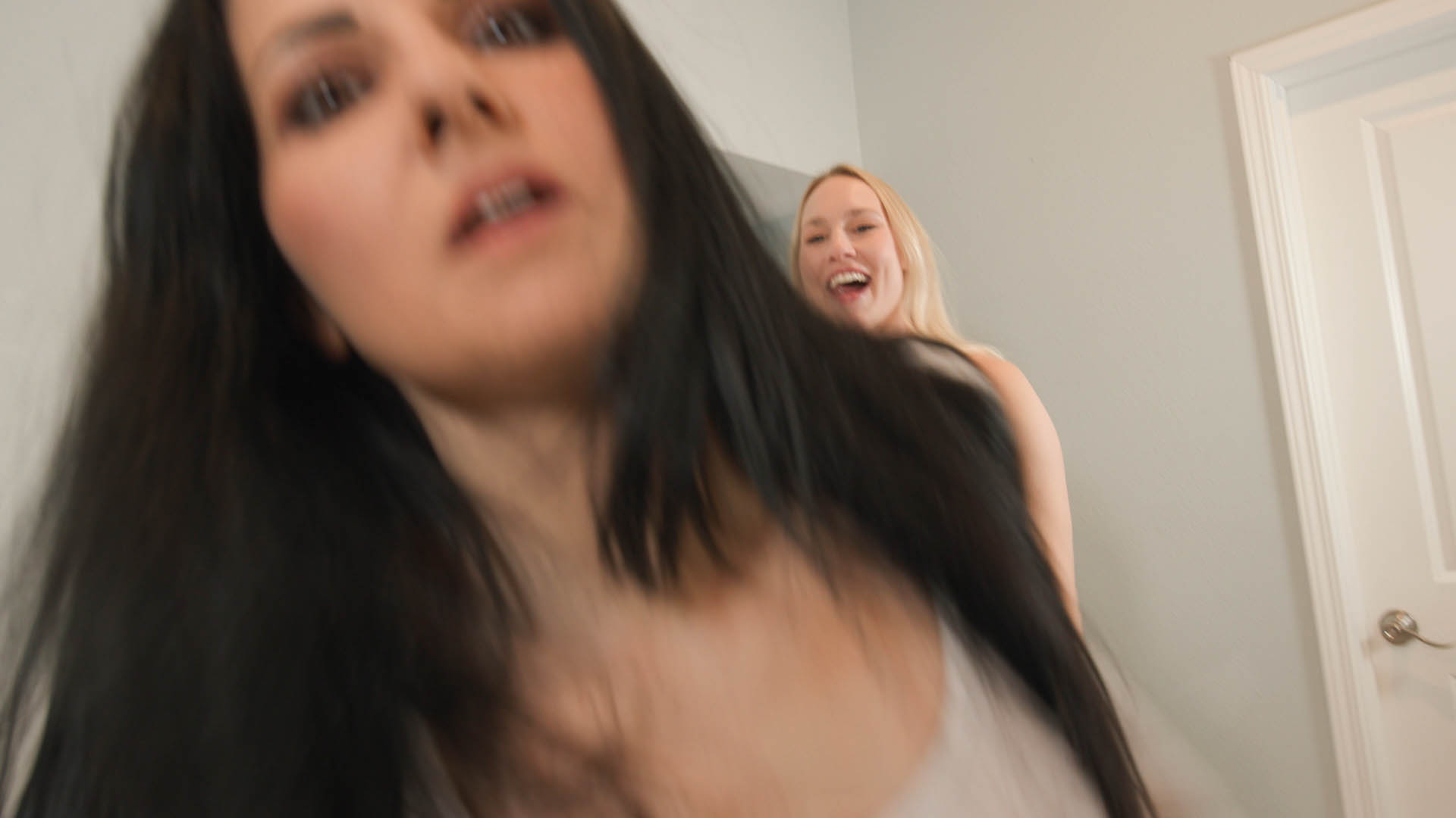 White Raven (Hannah Perez) initially dominates the Kingpin (POV), but she is overcome by the magic powers of a new villainess (Jolene Hexx) who joins the fray.