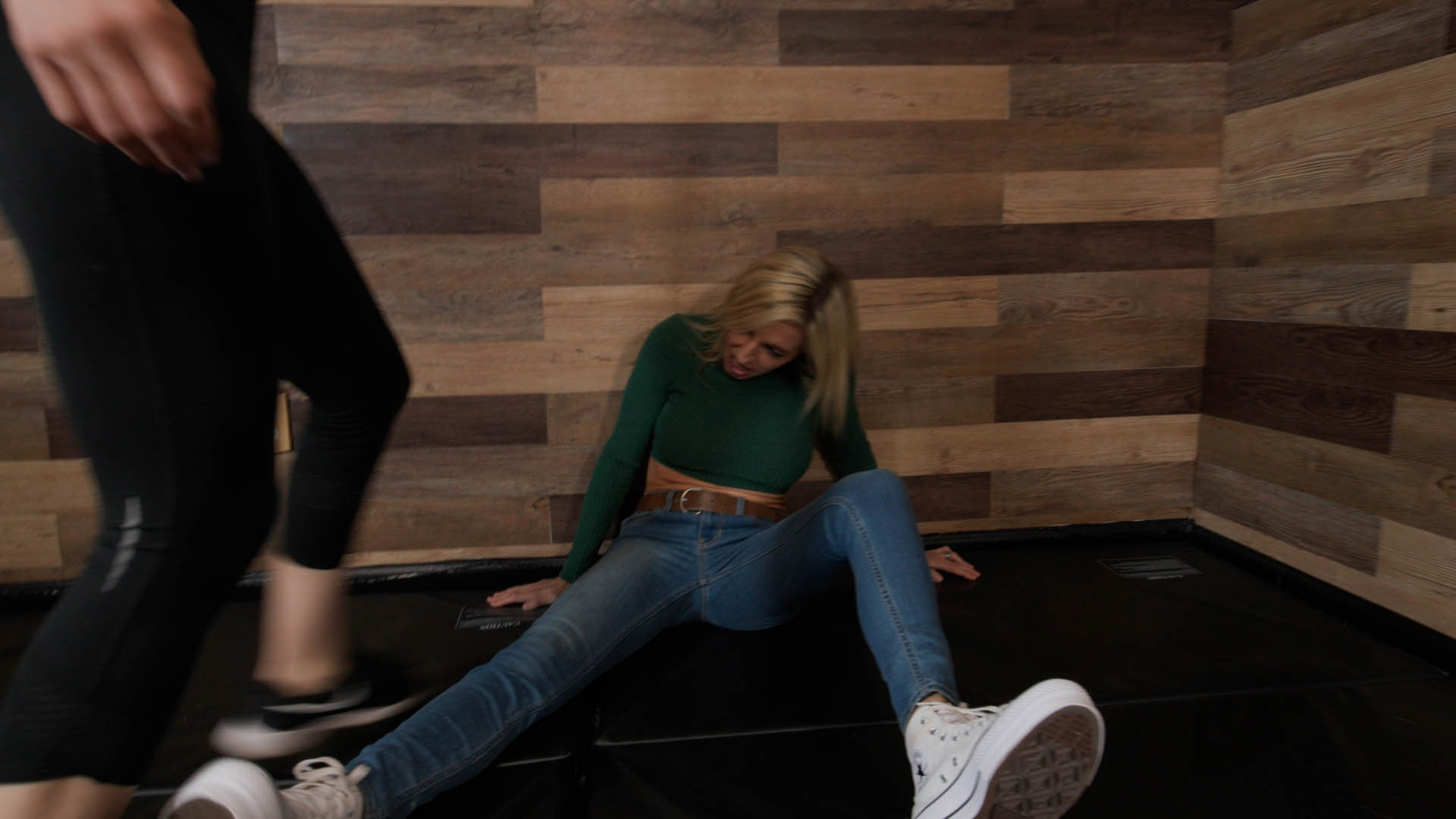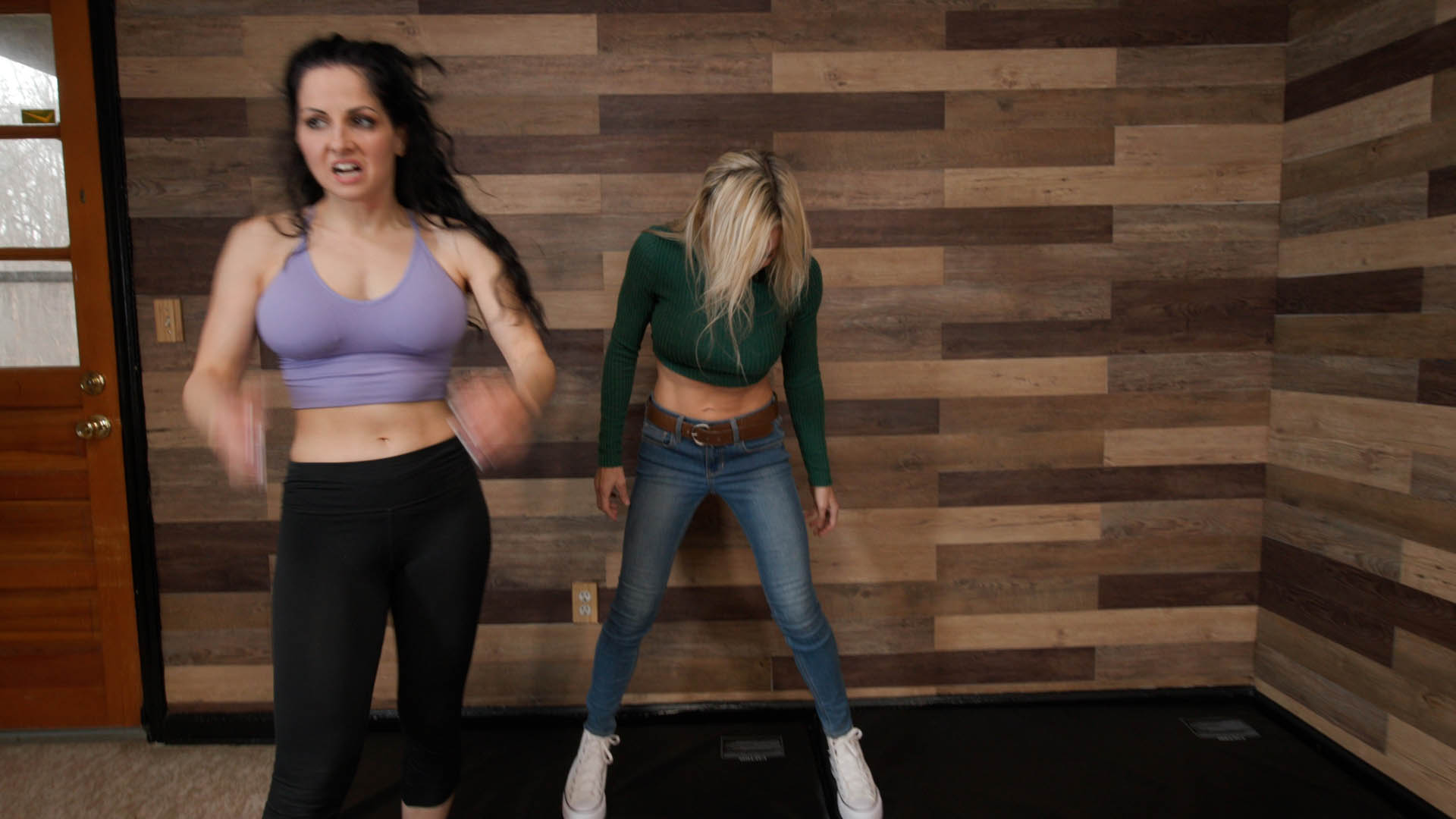 Hannah Perez gives Lora Cross a one-sided cunt busting attack with repeated kicks, knees, and low blows to Hannah’s poor crotch. Hannah Perez is merciless, and Lora Cross is defeated and pathetic during this punishment.