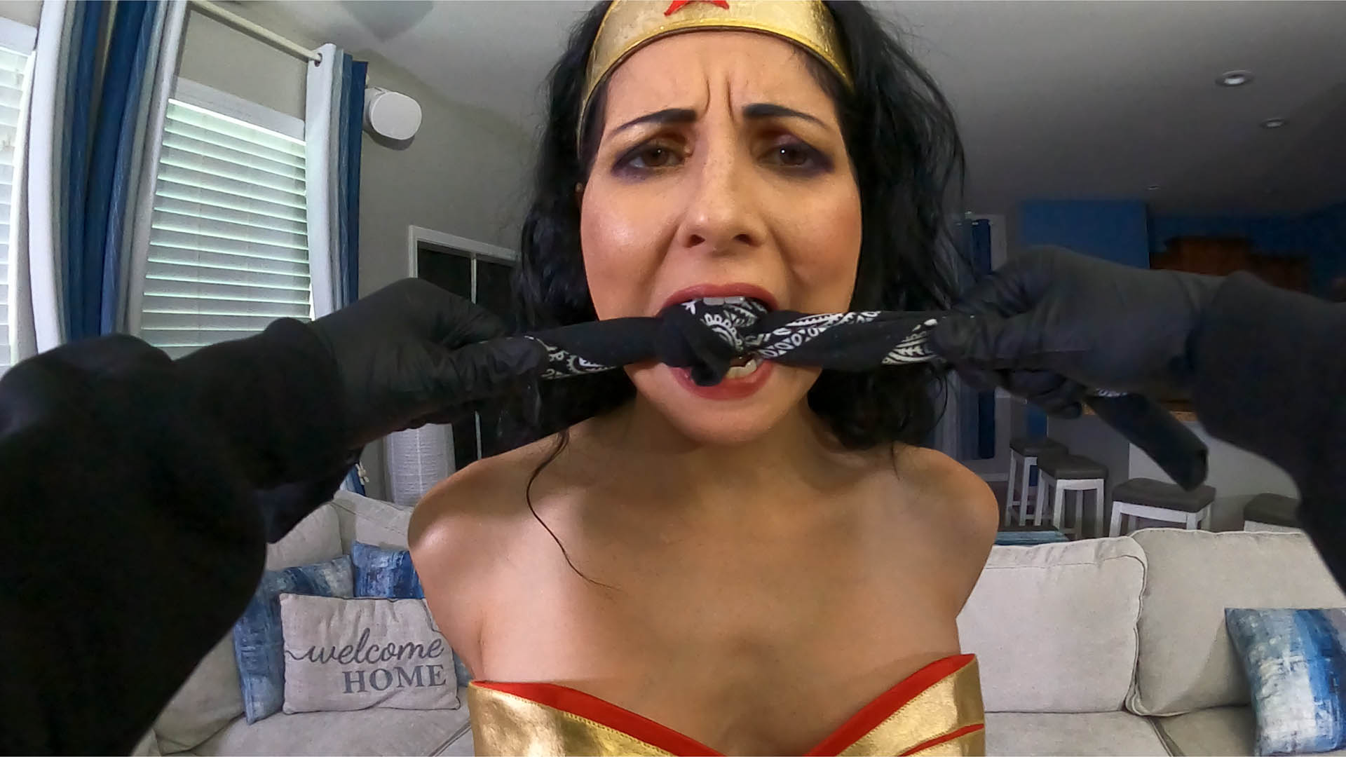 Wonder Woman, Hannah Perez, has agreed to be the slave of the POV. She’s angry, but honor-bound to comply. No whimpering. Just occasional eyerolls, angry grunts, and huffs.