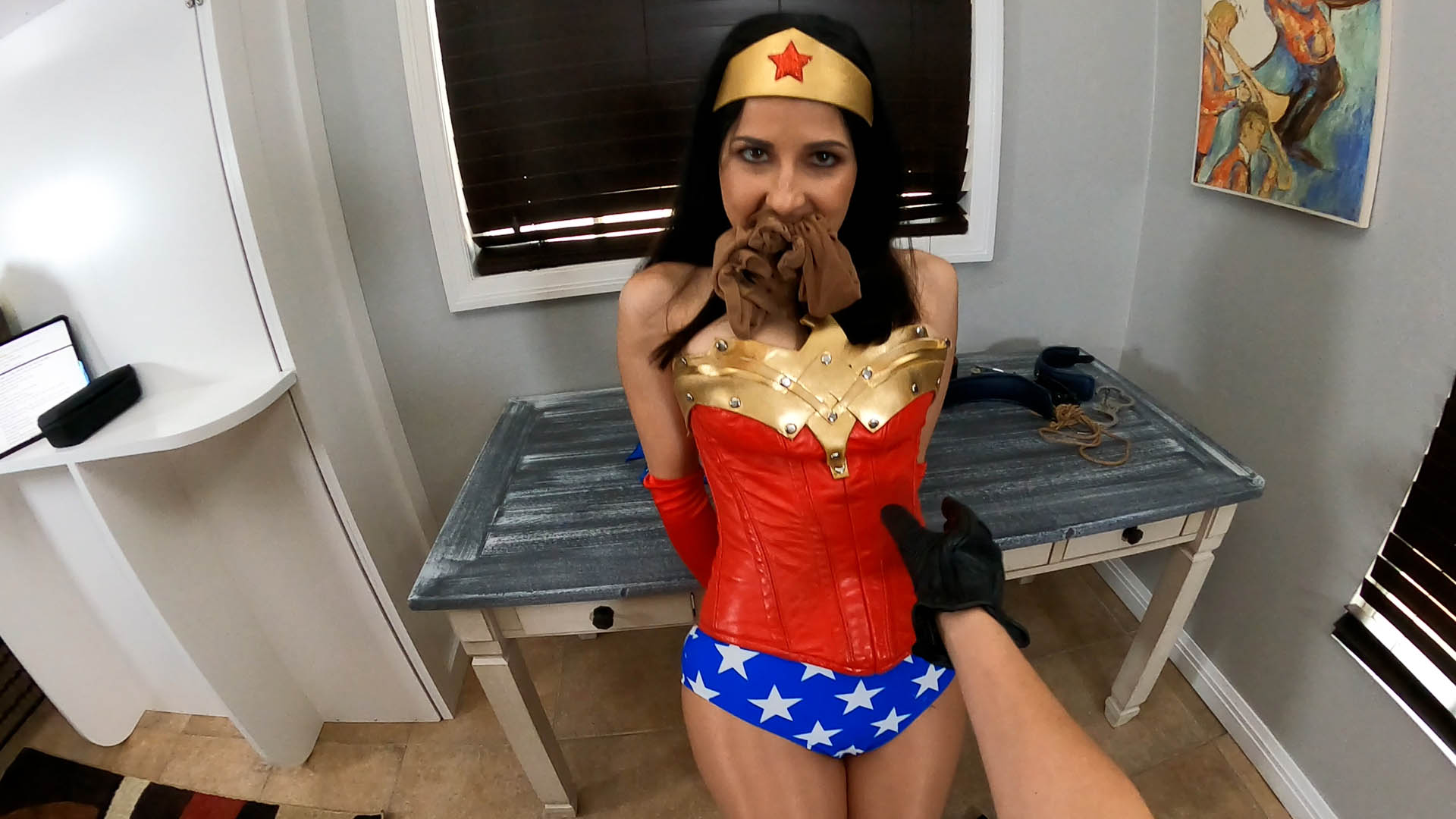 Hannah Perez as Wonder Woman continues her adventures with Panzon (POV) including some consensual role playing.