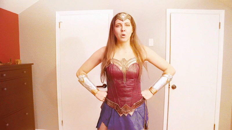 You shoot Wonder Sadie once again and she unfreezes. The reality of your powers has not yet befallen her. Sadie Holmes continues her confrontation where she left off. She asserts that your raygun is ridiculous, and — Wonder Sadie is cut off again. You have her frozen in place. You continue freezing and unfreezing her. The superheroine gets more and more desperate and realizes that while frozen, you have started stripping her out of her costume! Sadie Holmes is appalled and mortified. While frozen in place, you continue removing her items one by one and take your time running your hands up and down her body.